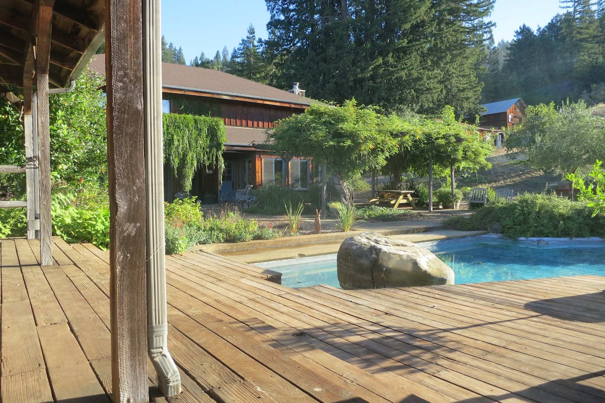 An authentic ranch home with pool surrounded by old growth fruit orchard, meadows and nature with endless views of Anderson Valley from a wraparound porch. The original house was built in the early 1900's but it has been updated! It is a cozy, one level cabin style. Nothing fancy but very charming. A great place to get away or a base for nearby wine tasting and sightseeing. Hiking trails and logging roads surround this cozy cabin style home.