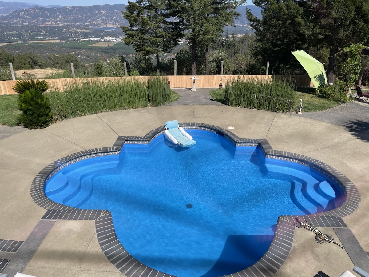 Go glamping in deluxe like-new fully air conditioned 25’ Airstream Flying Cloud with shore power, high speed Starlink internet, double your living space with large 8' x 20' private patio deck with Adirondack chairs, shade umbrella and spectacular view of Mt. Konocti. Owner’s large private in-ground salt water pool & swim up hot tub available for separate $25 daily rate. Book pool use directly with owner. Farm tour included in stay. Consider renting with Ozland Airstream One for larger groups.