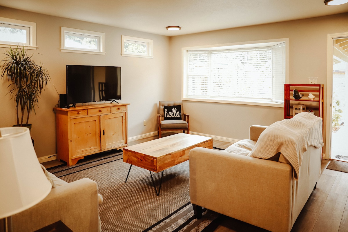 Lounge in this MCM inspired A-Frame cabin surrounded by towering redwoods. Situated near the edge of Jackson State Forest yet conveniently located just 7 mins from downtown Fort Bragg CA and Noyo Harbor. A large south facing deck offers space to unwind with access to a handmade cedar hot tub and BBQ grill. Inside you’ll find a sunken living room, fireplace, large built-in sofa, 2 bedrooms, vinyl record player, and more. Perfect for a couple’s getaway, solo trip or small family.