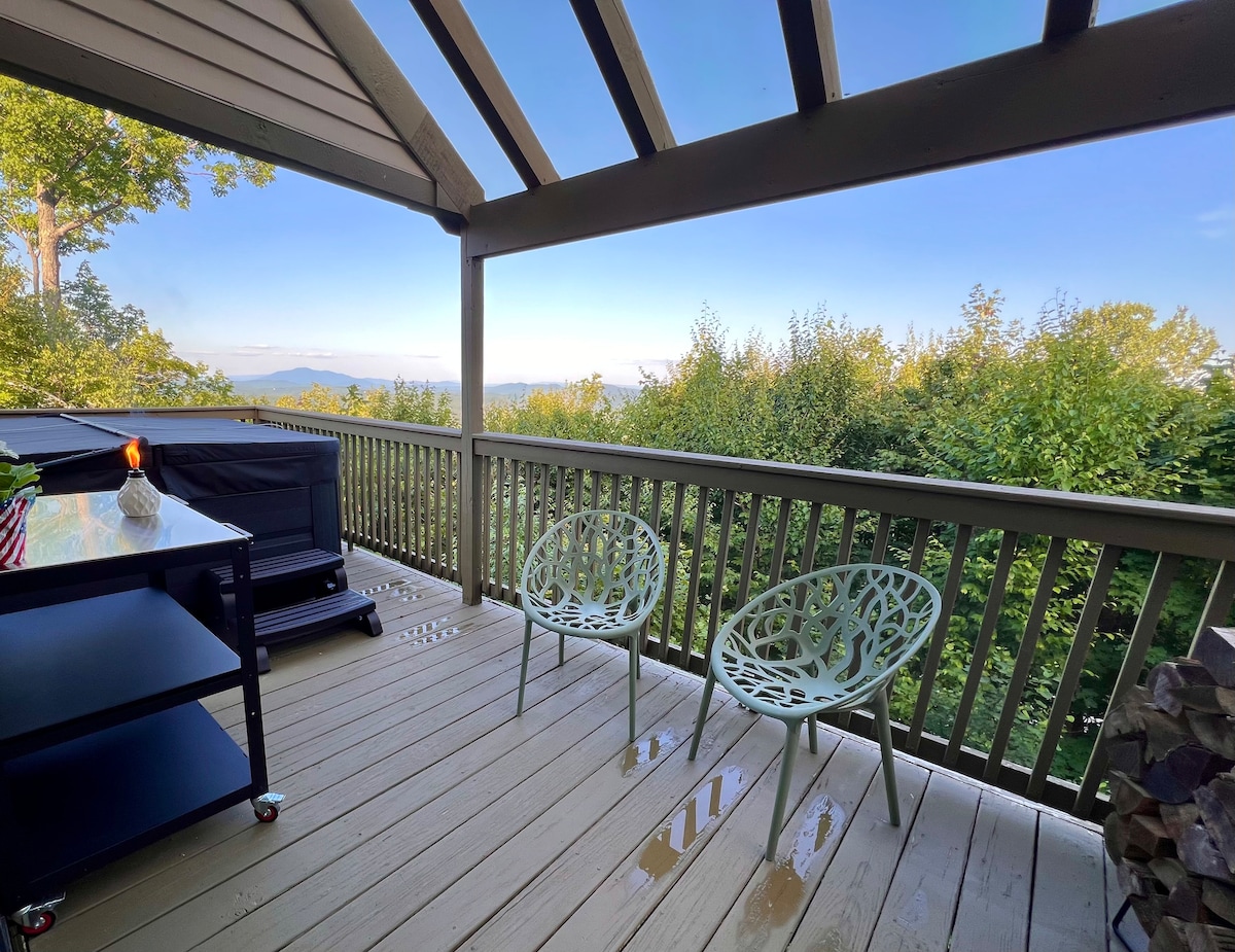 Experience the best of all seasons at our mountain retreat in the exclusive Okemo Trailside community, minutes from Fox Run Golf Course, hiking trails, and ski-in/ski-out access to Sachem Trail. Delight in our amenities: soak in the hot tub, relax in the sauna, and take in the panoramic views from the wrap-around balcony. Access the pool and tennis courts from Memorial Day to Labor Day. With 4 bedrooms and 2.5 baths, it’s the perfect family getaway!