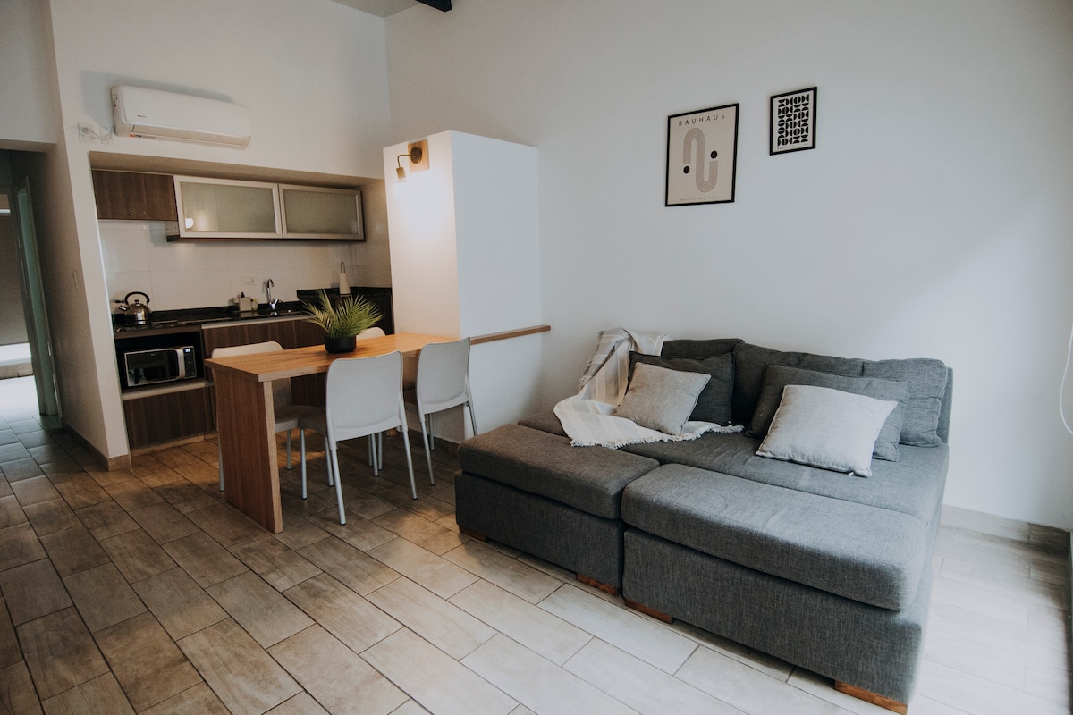 Located in a quiet residential area, it offers all the amenities you need for a stay in Mendoza. Its proximity to the downtown area (a 15-minute walk) and its peaceful location will make your stay a memorable one. Surrounded by green spaces and nearby shops, just one floor down, you'll find everything you need: a bakery, a café, an ice cream shop, and more. Half a block away, you'll find the metro, which allows you to explore the city and visit wineries.