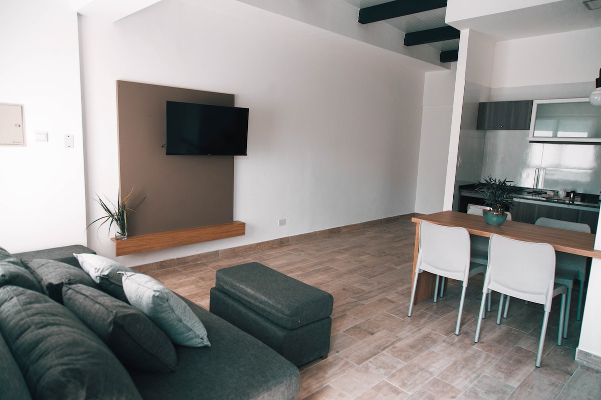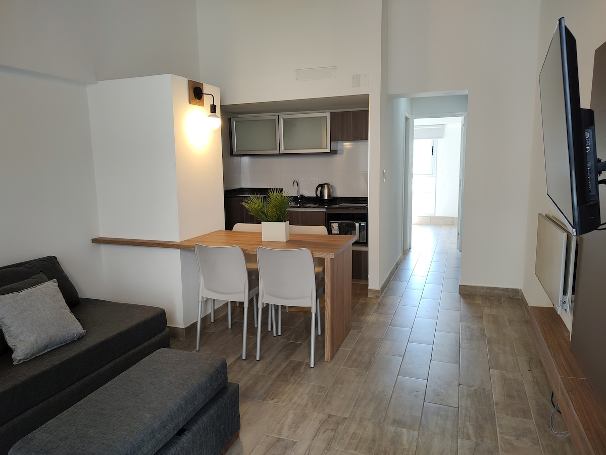 Disfrutá tu experiencia en nuestro alojamiento céntrico, a cuadras de calle Aristides Villanueva , que cuenta con gran oferta gastronómica y de bares en la Provincia. Departamento totalmente equipado para hacer de tu estadía puro disfrute. A 5 minutos del Parque general San Martín, y a 100 mts de la estación del metrotranvía ubicado sobre calle Belgrano. Departamento a estrenar para vivir una experiencia única cerca de todo en el corazón de Mendoza , en zona de quinta sección.