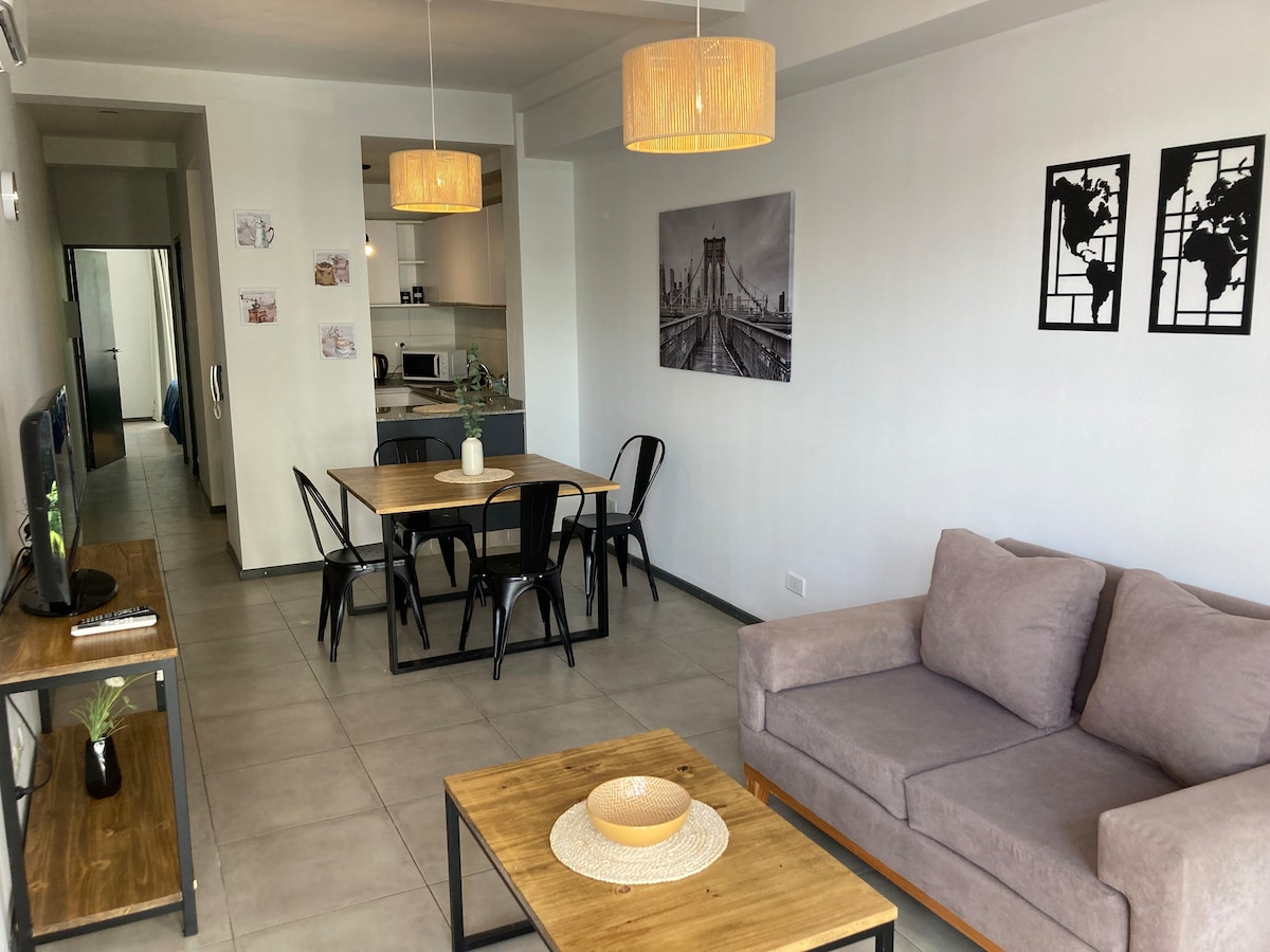 Sentí Mendoza como tu casa. Ubicada en el corazón de la ciudad. Zona de bares y plazas más importantes de Mendoza. A una cuadra de la peatonal. Disfruta de un espacio cómodo y atractivo. El apartamento es a estrenar, de 50 mts cubiertos y cuenta con una habitación, con cama superior y vestidor, TV y aire ac. f/c, baño, con secador de pelo, shampoo, acondicionador, cocina con península de piedra, living con TV, sofá cama y aire ac f/c, lavarropas. Estacionamiento de pago. ¡Infusiones de cortesía!