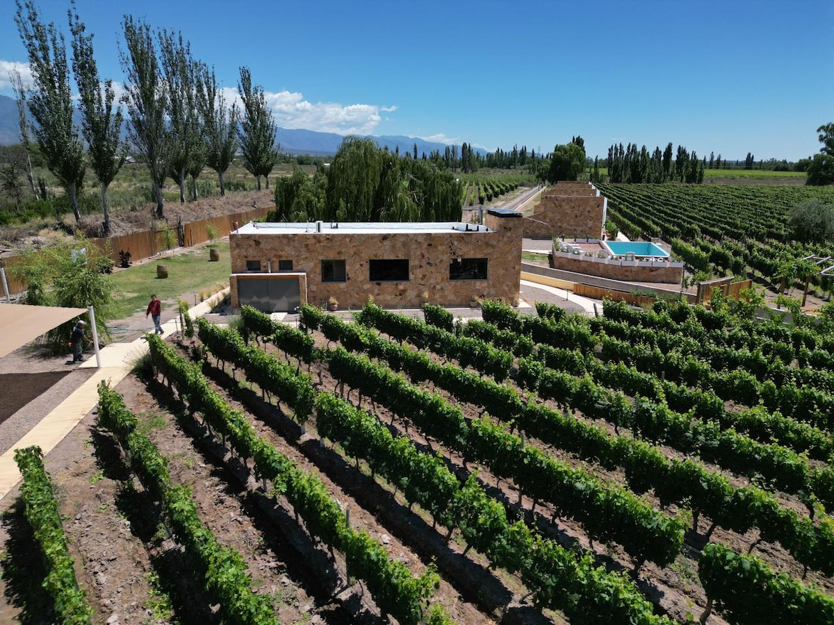 "Las Pircas, casa de campo" se encuentra en un rincón privilegiado del piedemonte mendocino, a solo 20 minutos de la ciudad de Mendoza y a 5 minutos de Luján de Cuyo. Rodeada de calma y naturaleza, cuenta con dos acogedores dormitorios para recibir hasta cuatro huéspedes, además de un amplio y luminoso loft gracias a sus grandes ventanales. La piscina privada, perfecta para los días soleados, completa una experiencia pensada para descansar y disfrutar del entorno en total privacidad.