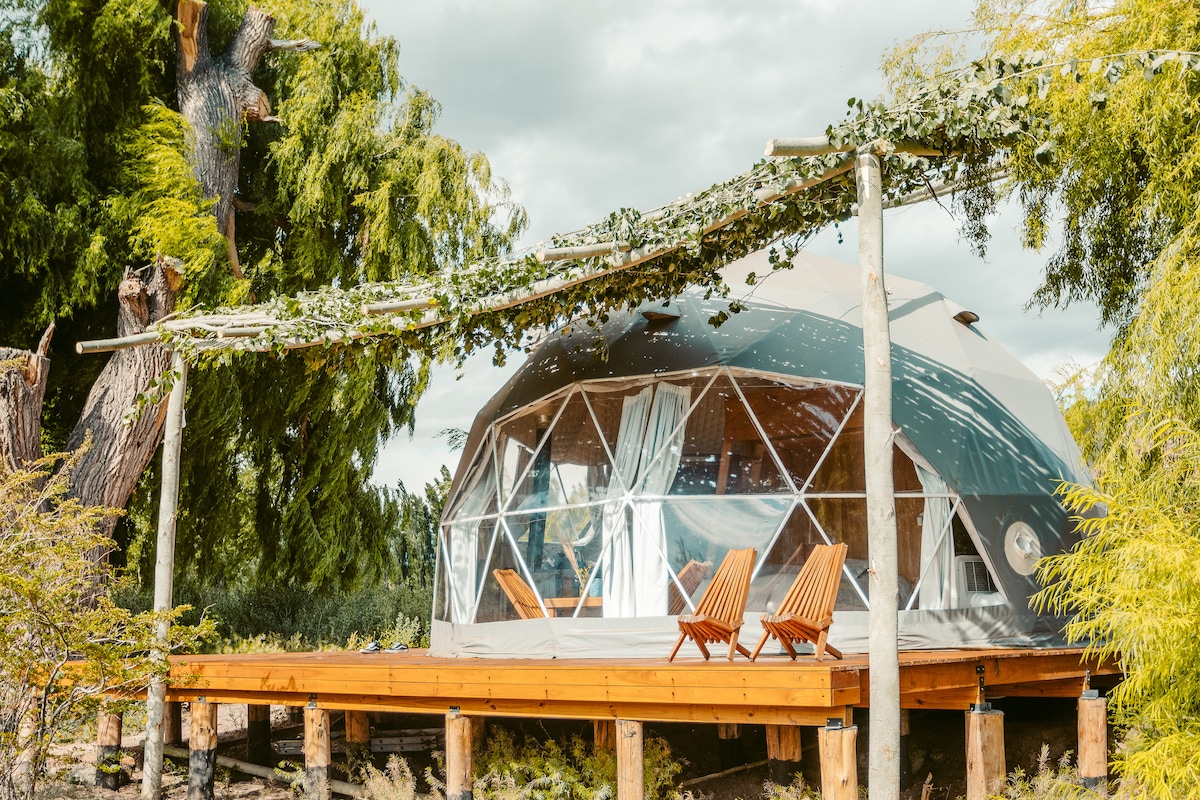 Descubre nuestro acogedor domo geodésico en la tradicional calle Guardia Vieja de Vistalba. Rodeado de las principales bodegas de la zona, este oasis vitivinícola te brinda comodidades de lujo y te invita a descubrir la serenidad y la armonía con la naturaleza mientras te sumerges en la experiencia de este retiro único. A metros de la ciclovía que conecta con las mejores bodegas, es el refugio ideal para relajarse, desconectar y disfrutar de la buena vida enológica y gastronómica de la región.