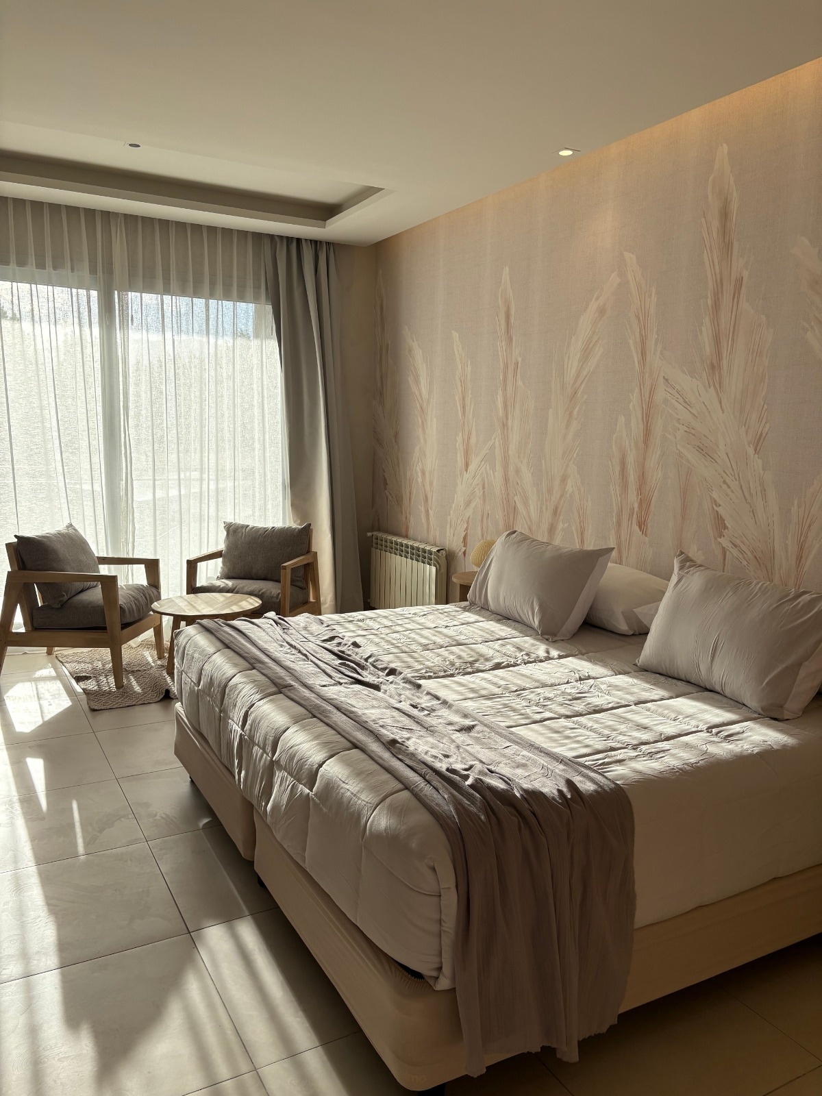 Hotel Alcántara está ubicado en el corazón de Chacras de Coria, Luján de Cuyo. Ofrece habitaciones amplias y luminosas de 42 a 46 m², equipadas con Smart TV 50”, aire acondicionado, calefacción central, camas y sábanas de primera calidad. Cuenta con piscina, hidromasaje climatizado, gimnasio premium, jardín y asador con parrilla. Internet de alta velocidad, estacionamiento privado y desayuno buffet de excelencia. Ideal para descansar y recorrer bodegas, a minutos de Mendoza.
