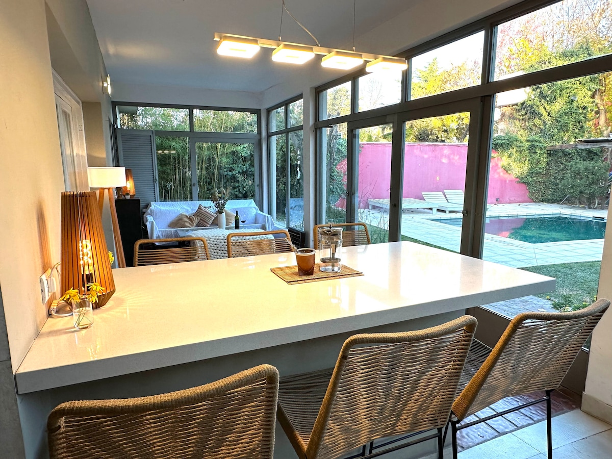 Colonial-style guest house with an artistic imprint, formerly owned by sculptor Eliana Molinelli.Carefully maintained spaces surrounded by greenery, with a swimming pool and an outdoor barbecue area.Located within walking distance of wineries, cafés, restaurants and local shops, yet set back from the main road, offering a quiet environment.This house is designed for guests who value calm, silence, remote work and staying in a place with artistic identity rather than a standard accommodation.