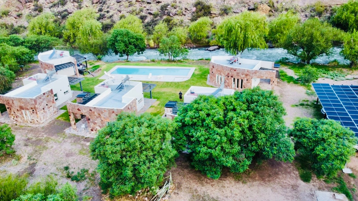 .Luxury eco-cabins on the Atuel River with private jacuzzi, large pool, and Starlink internet — perfect for couples, families, or remote workers. Enjoy 200 m of private riverfront, BBQ pergolas, and breathtaking mountain views in Valle Grande, San Rafael. Welcome to Bella Ribera, an exclusive complex of 5 private cabins on the Atuel River in Valle Grande, San Rafael (Mendoza) — featuring a large shared pool, private in-room jacuzzi, and high-speed Starlink internet.