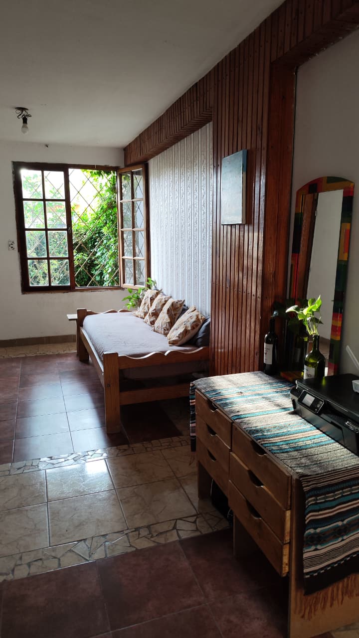 El espacio es la parte trasera de mi casa. Tiene completa independencia de la parte de adelante, ya que se ingresa por el costado de la casa, tiene baño privado, sala de estar, cocina y una galería con vista al jardín y a la piscina. El alojamiento es muy amplio y luminoso, con una gran cantidad de cuadros con pinturas y dibujos, ya que soy artista plástica. Esta es una zona ideal en Mendoza, ya que es más tranquila que la ciudad y es más fresca, lo que permite descansar del calor mendocino.