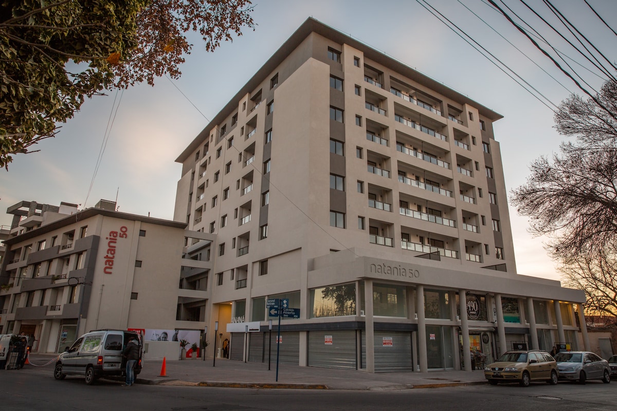Disfruta de una experiencia con estilo en este alojamiento céntrico. Ubicado en el corazón de mendoza, a 300 metros de su mágico parque! Disfruta de caminar por las mejores calles de la ciudad, los mejores restaurantes y un paisaje inigualable. Equipado con un gimnasio inigualable, una piscina de pelicula y áreas comunes mágicas Además el complejo cuenta con un exclusivo polo gastronómico "Mercado Moreno" con oferta de restaurantes, cafés y minimercados para disfrutar aun mas de la estadía.