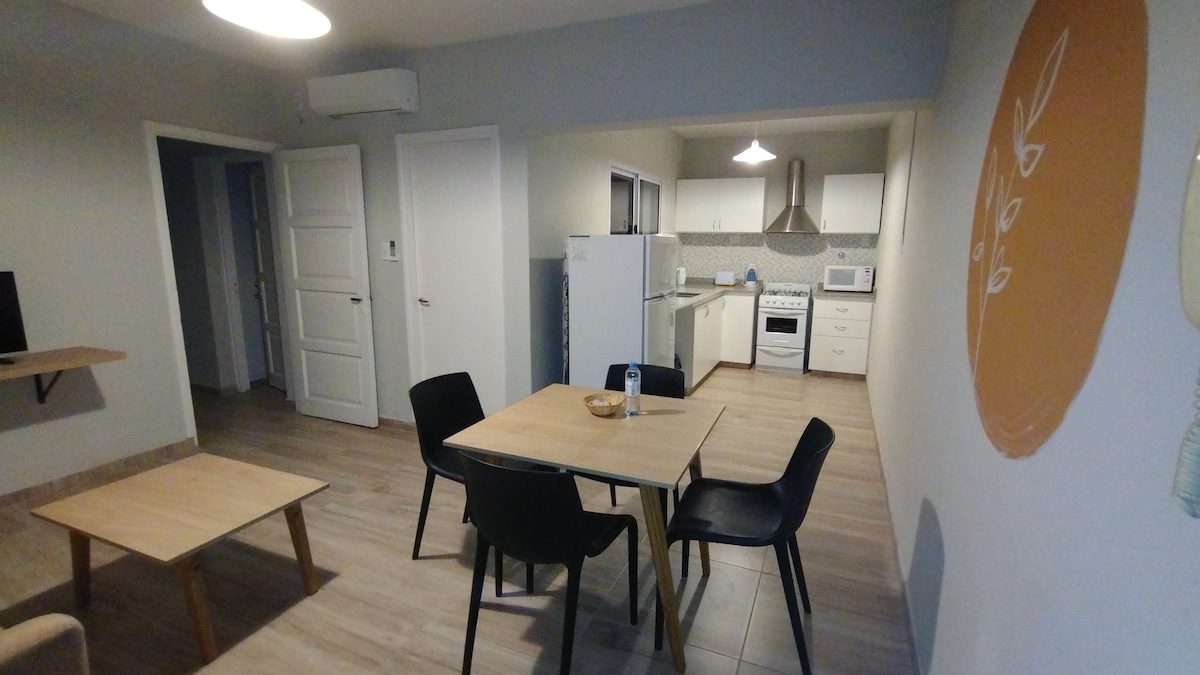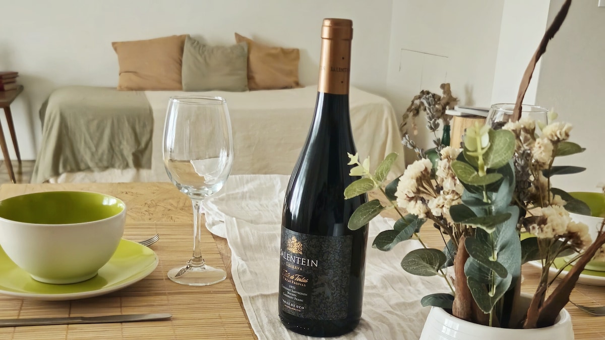Immerse yourself in the authentic essence of Mendoza by staying in our new, comfortable, and tranquil apartment. Located in the heart of Mendoza: the Bombal neighborhood. A picturesque neighborhood with green spaces and plenty of specialty cafes. You are a 15-minute walk from the city center and General San Martín Park. The space features hot/cold air conditioning, a new mattress, Wi-Fi, direct TV, and private parking. We provide guidance on wine tourism.