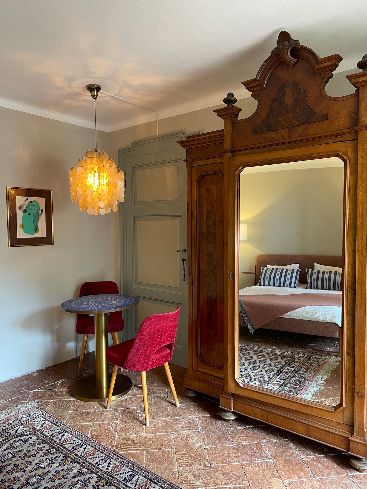 The accommodation is located in the historic center of Mendrisio, in the Canton of Ticino, which lies on the southern shores of Lake Lugano. The city is a blend of art, history, and nature. It is surrounded by hills with vineyards and green mountain ranges such as Monte San Giorgio and Monte Generoso. Various cultural, musical, and religious events are organized here. You can admire numerous architectural beauties by Luigi Fontana and Mario Botta.