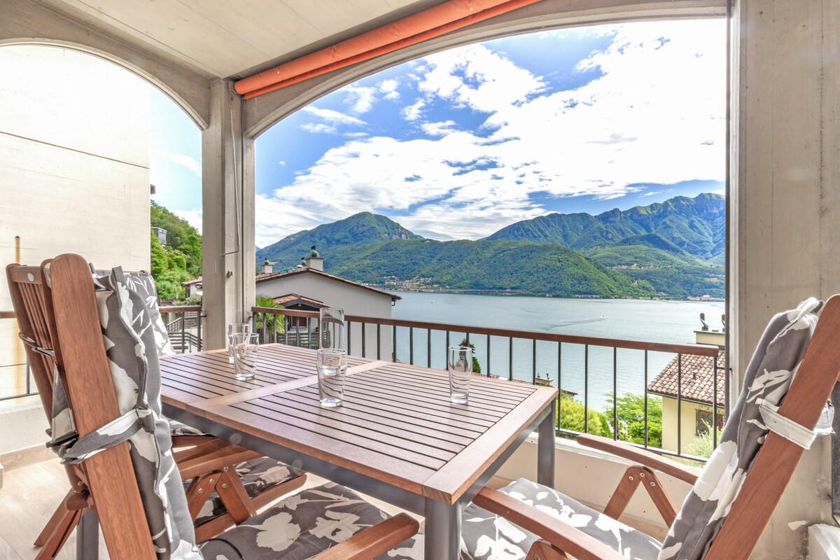 Splendido appartamento sul lago Ceresio, immerso nel verde del Parco Belvedere, dispone di una piscina al coperto e una grande piscina esterna. L'appartamento ristrutturato recentemente è provvisto di una cucina americana, un soggiorno che da accesso sul terrazzo, due camere doppie, un bagno, WI-FI e TV. Nell'immobile gli ospiti hanno accesso all'area fitness e alle piscine, inoltre dispongono di un parcheggio comune.