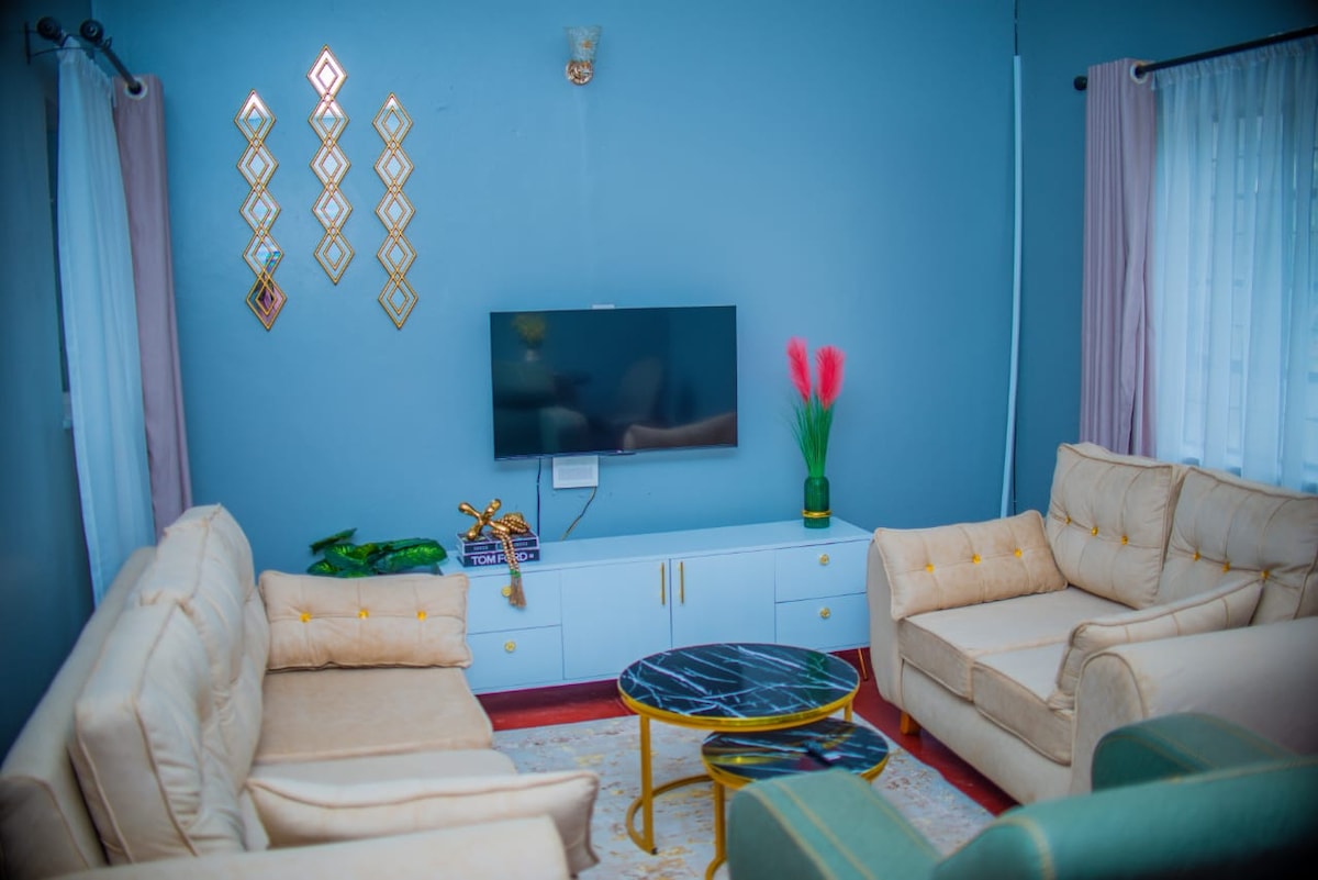Escape to this cozy 3-bedroom home nestled in nature and farmland, just 15 km from Nakuru town. Enjoy a spacious living area with a smart TV, a fully equipped kitchen, dining space, and a dedicated workspace. Relax in the lush backyard, complete with comfortable furnished seating and dining table and a front garden. Perfect for couples, families, or friends. Explore nearby attractions like Menengai Crater, Lake Nakuru, Lake Elementaita, Hell's Gate, Lake Naivasha & Thomson’s Falls.