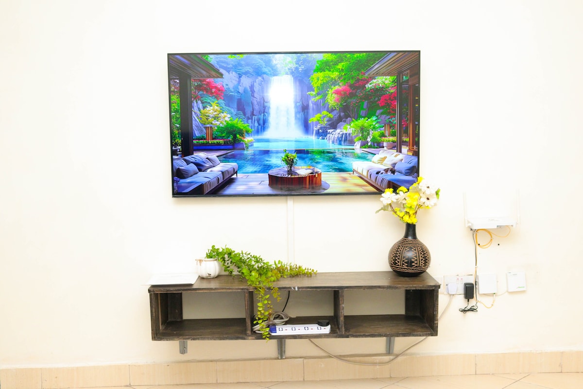 LIVING ROOM Flat screen, Smart TV Netflix Subscription KITCHEN Oven with gas range burners Pans,Pots,Dishes & Silverware Coffee,Tea,Sugar stocked for your convenience Family sized fridge for longterm stay Microwave BEDROOM Queen Sized Bed & Comfy Mattress Ironing board & Iron Box Ample Storage Cabinets Extra throw pillows & throw blankets WASH AREA Hot shower w/ Shower Supplies EXTRA FACILITIES Dining area/ Study Area Super fast reliable Wi-Fi 10mbps Laundry & Mid-stay cleaning services