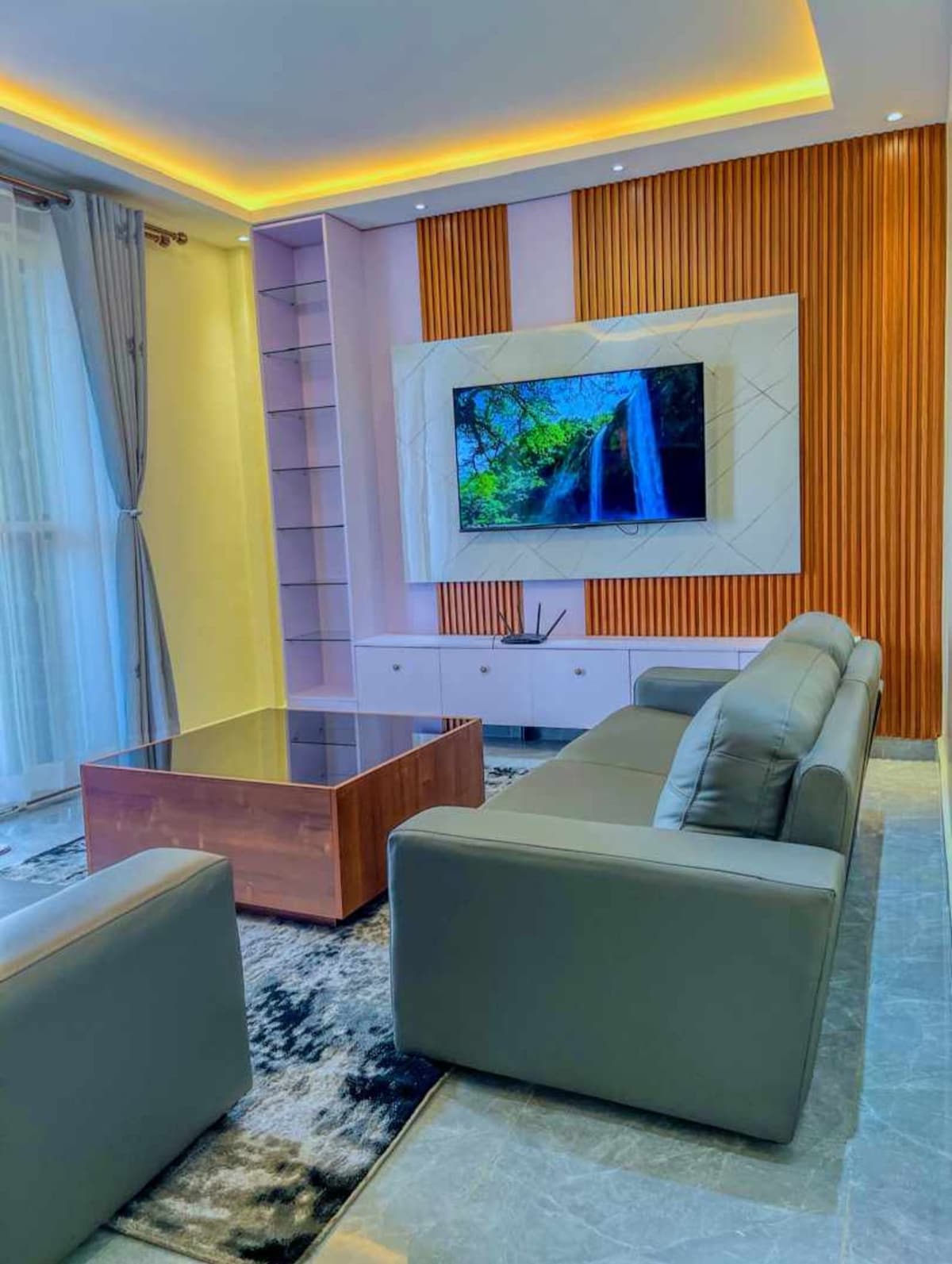 Tranquility Apartment offers guests sleek décor within a lush green and secure, gated community. The apartment is on the 4th floor, accessible through stairs, with expansive views of Kampala city; and easy access to the City Centre. The apartment includes: 3 tastefully furnished bedrooms, 2 bathrooms, free WIFI powered through a high speed Fiber Optic Internet Connection, Netflix, DSTV, a 6 seater dining area, Kitchen with modern appliances and laundry area.