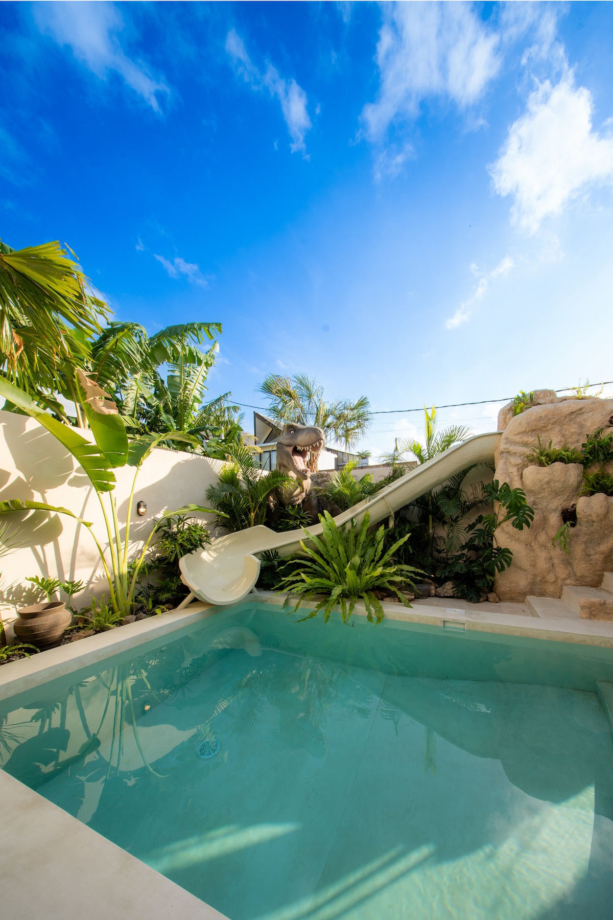 Wake up surrounded by nature, enjoy breakfast at one of the many good restaurants and cafés within walking distance, and go wild on the Dino pool slide! 🌿🦕✨ Canggu - Pererenan’s most fun luxury 3BR villa with: ☘︎ 6 minutes from the beach ☘︎ Coolest neighborhood ☘︎ 3 different themed bedrooms ☘︎ Private pool & pool slide ☘︎ Endless photo ops ☘︎ Perfect for families & groups who love adventure ☘︎ private parking for 1 car & 1 bike Book now!