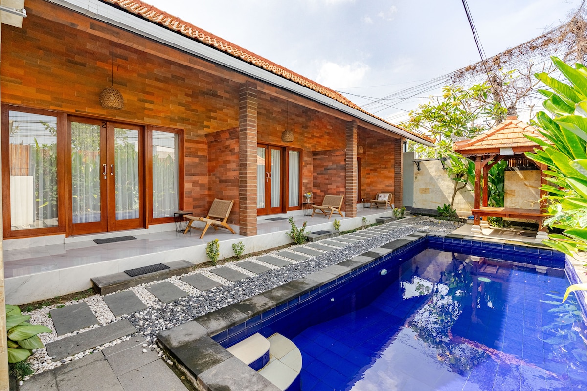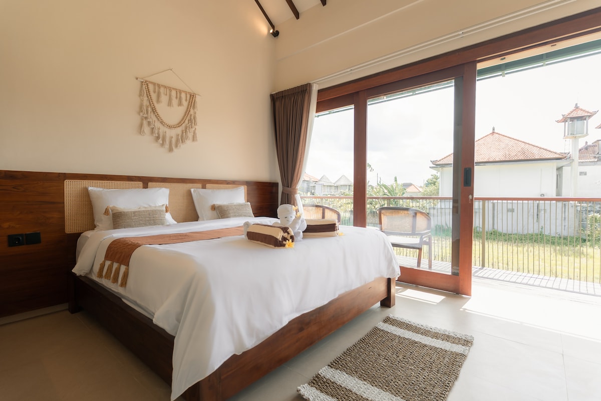 Discover a modern guesthouse in Pererenan with beautiful views of the surrounding rice fields. Our peaceful setting is ideal for relaxation. Enjoy meals by the pool or delivered to your room from our on-site restaurant. With reliable internet throughout the property, working remotely is effortless. Choose between our loft apartment with a kitchen or one of our comfortable rooms for a stay tailored to your needs.