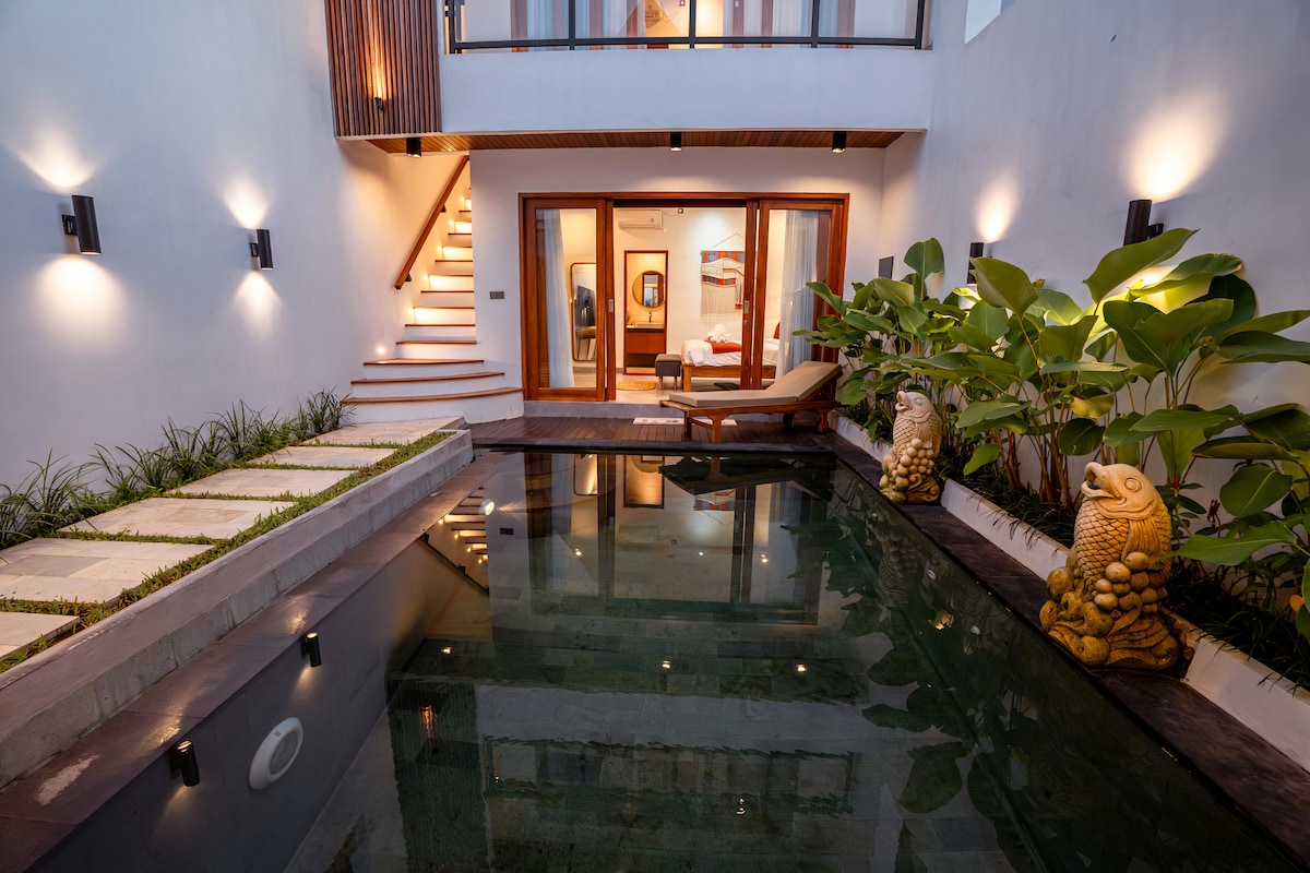 Our two-story residence captures the essence of serenity, featuring expansive living areas, spacious master suite with en-suite bathtub, bathroom and walk-in closet, fully equipped kitchen island, and private pool surrounded by a lush tropical oasis. We offer more than a stay; we create experiences. Enjoy a relaxing in-villa massage, or movie nights with a projector and popcorn. Each moment is curated to rejuvenate and inspire, creating a stay uniquely yours.