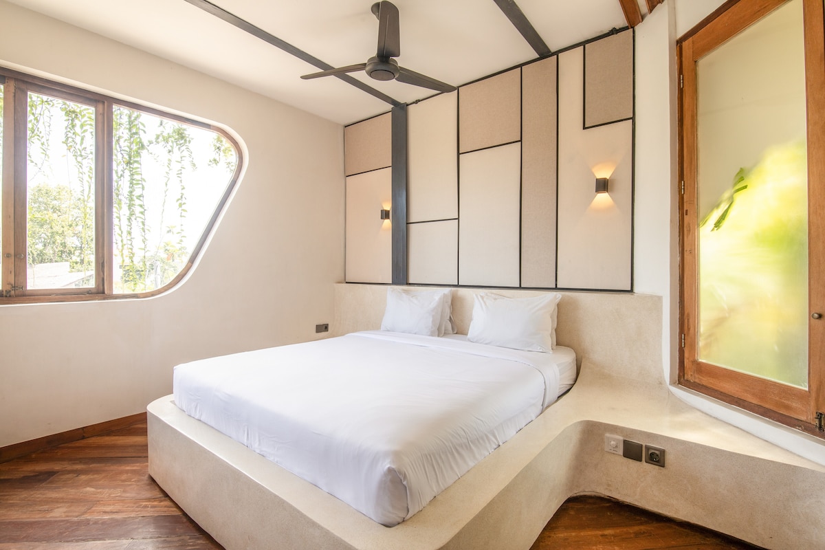 Welcome to Sunny Muse—a light and peaceful suite designed for modern travelers. Enjoy a private balcony with views across Canggu, just minutes from surf, cafés, and nightlife. • Steps 350m from Nelayan Beach • Easy access to Revolver, Fold, KYND and Canggu’s hits cafes • Quick reach to Finns, Atlas, and hits night life Fast Wi-Fi and full-time guest support included.
