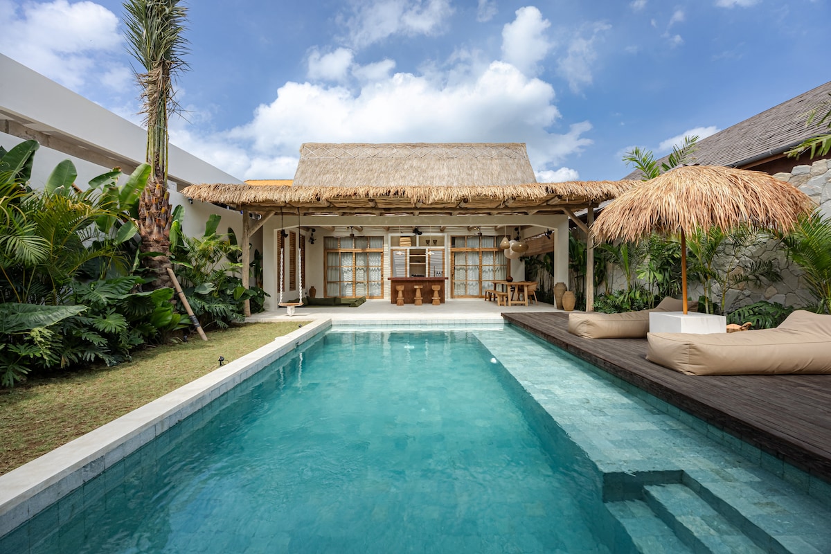 Discover NAWASENA VILLAS "B"—your private slice of paradise in Bali’s trendiest neighborhood, Pererenan. Close to the beach, this brand-new 1BR designer villa is the perfect fusion of earthy organic & effortless luxury. Natural textures, soothing tones, spa-style bath & breezy thatch roof designed for ultimate island getaway. At its heart lies your own private sanctuary—a shimmering pool with stylish lounge in lush tropical greenery. Live the dream and book your unforgettable escape TODAY