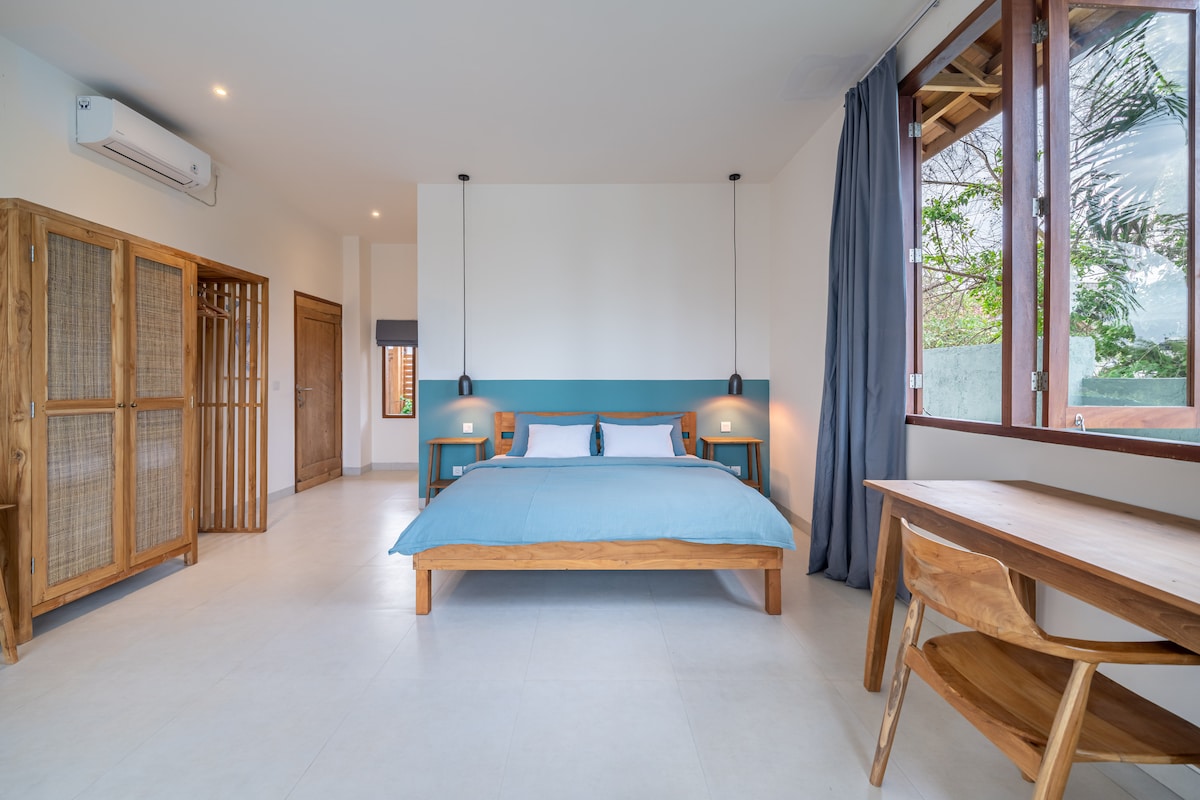 Our new Agave is private & romantic: 100 yr old teak wood, hand woven grass roof and a dreamy white stone pool! We are off the beaten path, & for fit folks (40 steps), but near cool cafes, yoga , and paddy walks. The bedrooms have AC & lock, but the living room remains open for maximum indoor-outdoor living. Fast WiFi. Agave has NO car access. Your car will drop you at Bintang and our staff will greet you & carry your bags, a 5 min walk. Since we are hard to find, you MUST use our drivers!