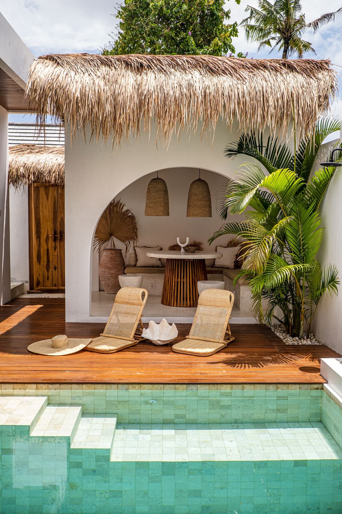 Honeymoon villa with huge pool & coconut garden. Prime location walking distance to all the restaurant & cafes in Canggu. Huge private pool & gets sun all day perfect for tanning on the terrace. Two bedrooms have king beds AC & 55" TVs + bathrooms. Living area with AC full kitchen, lounge dining & Bluetooth speaker. The staff come daily for cleaning & in-house massage table- the perfect way to relax. We are surrounded by Bali's best cafes & restaurants, Epic location at Echo Beach & Batu Bolong.