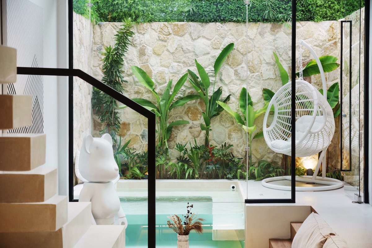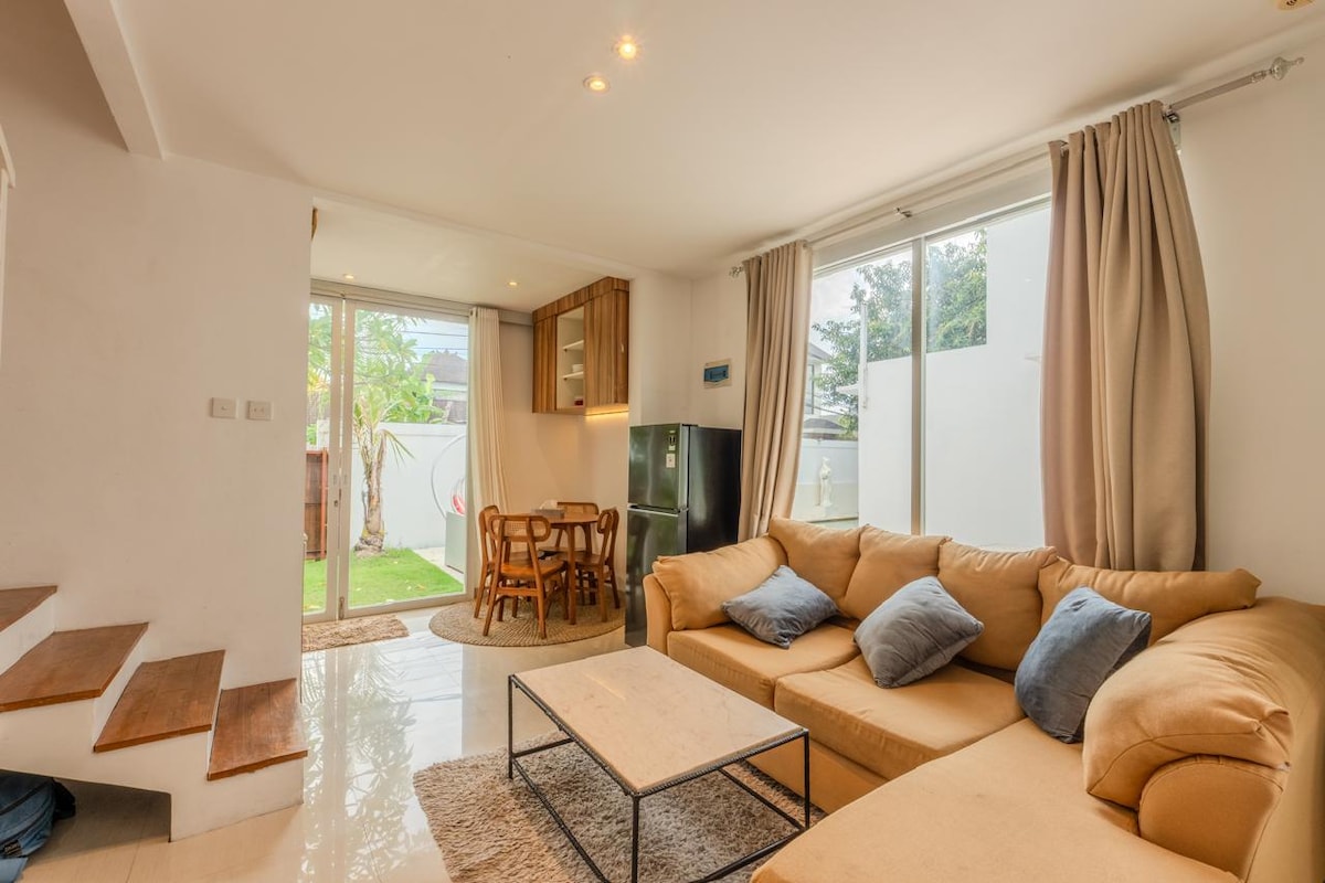 Welcome to our chic one-bedroom townhouse. Located in the pocket area of Canggu. With its industrial-tropical fusion that offer the perfect balance between modern sophistication and comfortable living. - Just within a few minutes' drive to the beach, gyms, restaurants, cafes, clubs/bars, and shops - Housekeeping included & service staff to assist with airport transfer, scooter rental, floating breakfast, etc. - Private plunge pool & outdoor dining - Fully air-conditioned living area & bedrooms