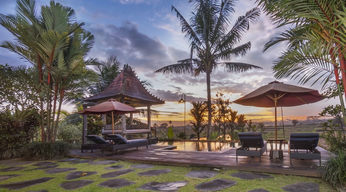 Are you bored and tired of quarantine and longing for a new place and a new atmosphere to just break away for a couple of days, week or month? the megananda has the answer, Our private pool villa has a spectacular Sunset Private Infinity Pool overlooking to the green rice field view,Perfect combination of the comfort of modern living and the exotic of tropical living with touches of Balinese art philosophy, Its dedicated for the one who appreciate quality time and love to blend with nature.