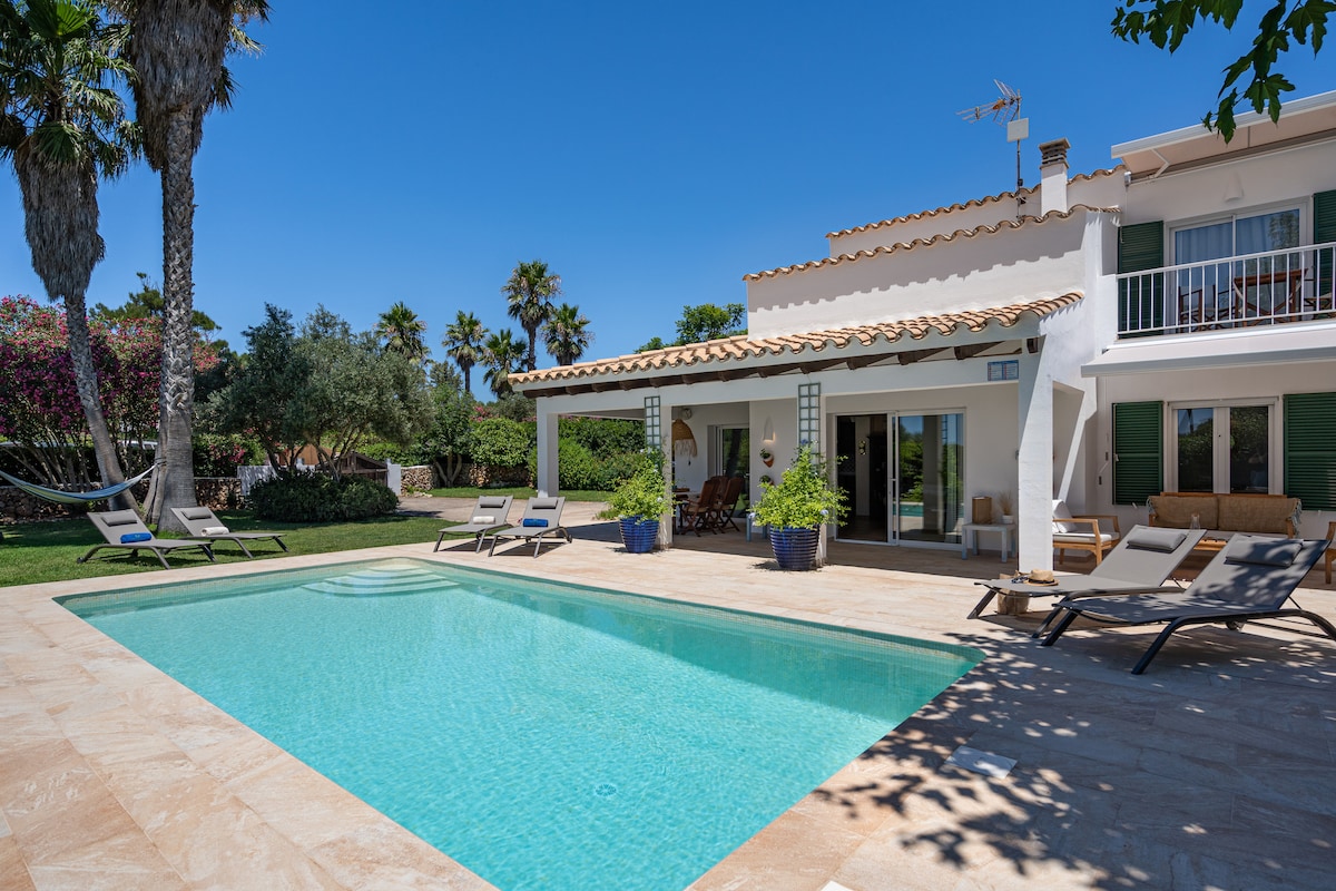 Spacious 130 m² private villa with 250 m² of outdoor space, located in a very quiet residential area close to Ciutadella. Just a 4minute walk away you will find a supermarket, restaurants, and access to the beach of Cala en Brut and Cala en Blanes, no car needed. It features 3 double bedrooms, 2 bathrooms, and a sofa bed, accommodating up to 8 guests. Outdoor area with swimming pool, garden, porch, pergola, and barbecue. Air conditioning, high-speed Wi-Fi, parking, bed linen, and towels included