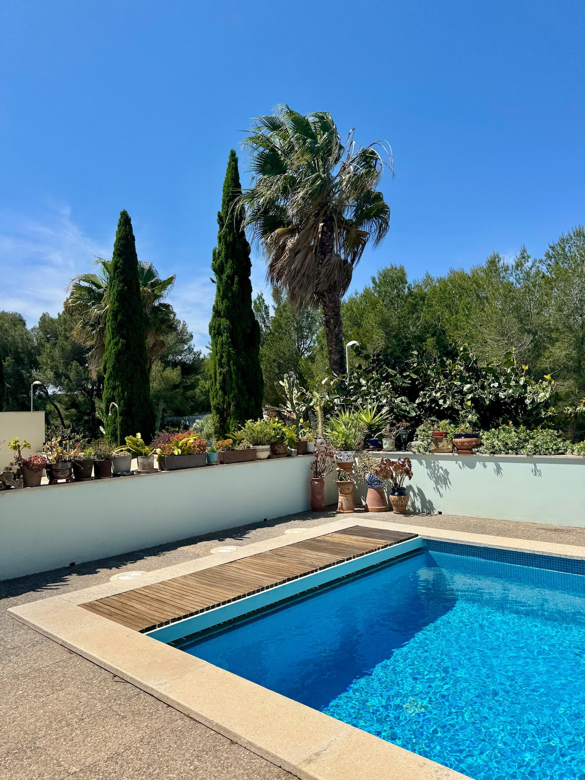 Modern and spacious 3-bedroom villa overlooking Cala Llonga, just 300 meters walk from the sea and 10 minutes by car from the city of Mahón. Enjoy the privacy and luxury of having your own private pool and garden to enjoy your well-deserved vacation. The villa comes fully furnished and consists of a living come dining room, a fully equipped independent kitchen, 3 bedrooms with en-suite bathrooms, a workspace, a gym, a bathroom, and private off-road parking.