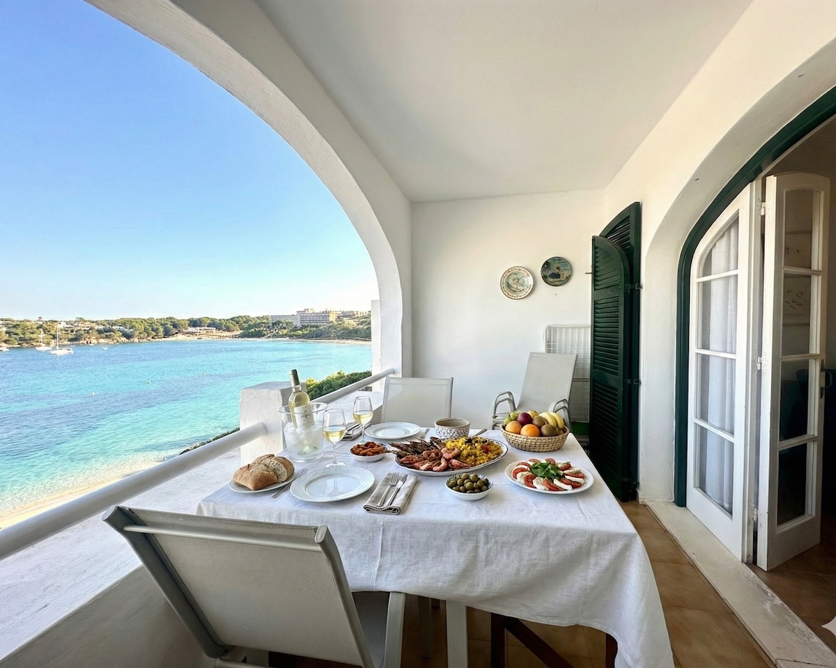 Apartamento ideal para 6 personas con vistas al mar y acceso directo a la playa d'Arenal d'en Castell. 3 habitaciones 2 baños , zona común del salón-comedor y cocina totalmente equipada Disfrutarás de una acogedora estancia, en un apartamento reformado, con toda clase de comodidades a tu alcance. La zona del jacuzzi y sus terrazas ofrecen la posibilidad de disfrutar al máximo de los exteriores de la casa.