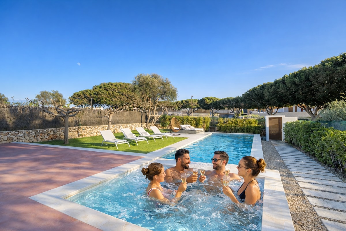 Bon Somni is a villa full of character, located just outside the resorts centre and all the restaurants and cafes and only a short 10-15 minute walk to the beach. There are 3 good sized bedrooms, 2 bathrooms and a large, open plan living area, which spills onto a sunny terrace, perfect for alfresco dining and morning Mediterranean breakfasts. There is a private swimming pool, Hot Tub and a built-in kitchen BBQ. The villa is very clean, welcoming and stylish inside and very comfortable option.