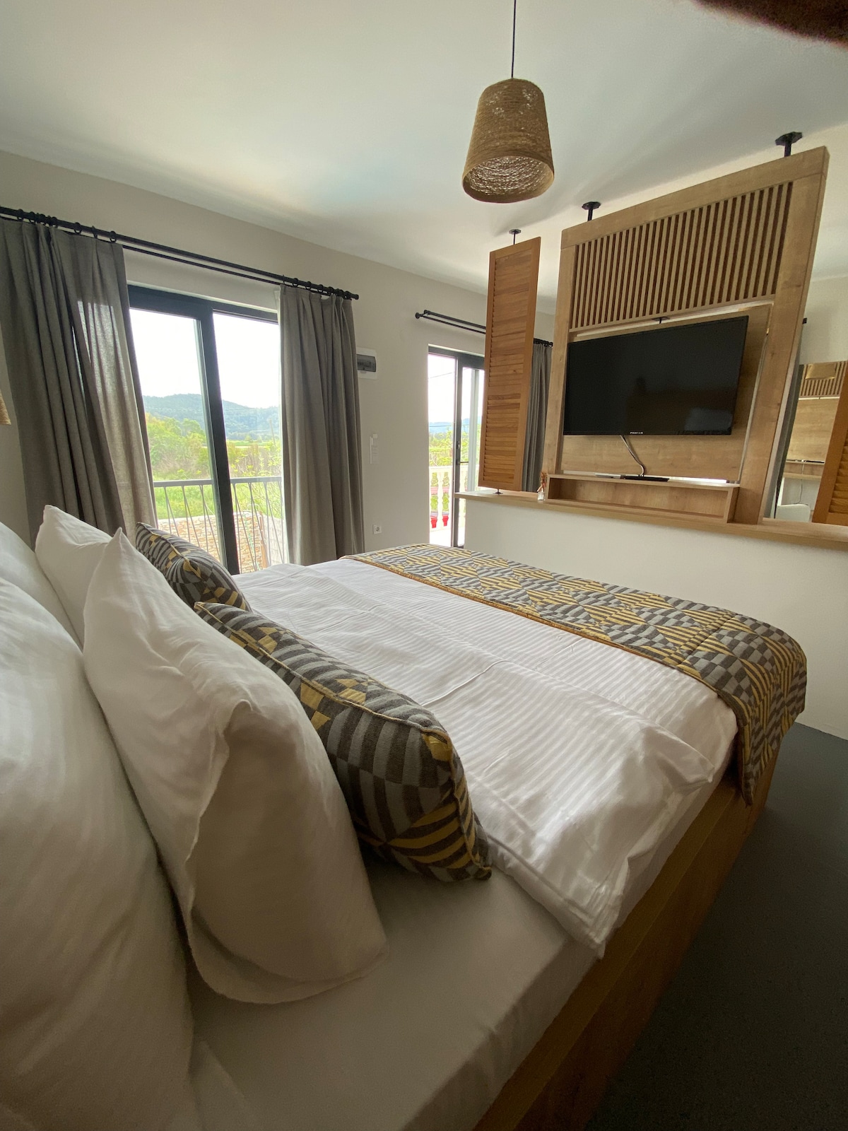 With its stunning traditional Akyaka-style high shed ceilings, and spacious terrace overlooking the magnificent Gökova Bay vista, this deluxe suite provides the ultimate unique experience combining gorgeous contemporary architecture with a traditional and authentic feel. Whether you would like to soak in the jacuzzi overlooking the view or enjoy the elegantly cozy interior, Roda will provide a relaxing and breathtaking experience.