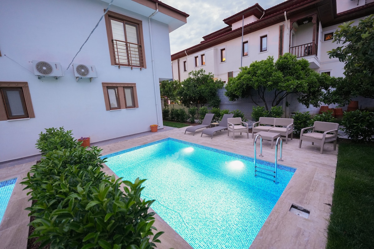 Özel havuzlu olup , merkezî bir konumda bulunan bu yerde kalırsanız ailece her yere yakın olacaksınız. Evimiz sahile 3 km mesafede olup, konforlu ve lüks bir yaşantı ile aynı zamanda sessiz ve huzurlu bir tatil imkanı sunmaktadır.