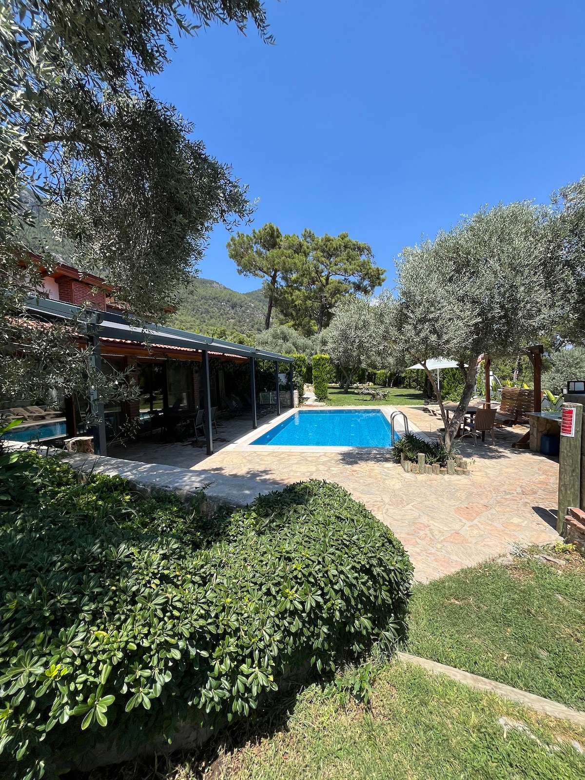 Çocuk dahil maksimum 6 kişilik olan villamız aynı zamanda pati dostudur. Gökova'nın muhteşem florasına yukarıdan bakış Gündoğumu,solda çam ağaçlarından başlayıp günbatımını Gökova denizinde bitiriyorsunuz .Çamların arasında doğa içinde eşsiz sakinlik ve huzur.Size özel havuzunuza girip terasında tüm gün huzurlu vakit geçirmek için ideal 1600 m2 portakal,limon incir ağaçları içerisinde kocaman bahçeli özel ev.Üstte orman yolunda doğa yürüyüşü yapabilirsiniz.