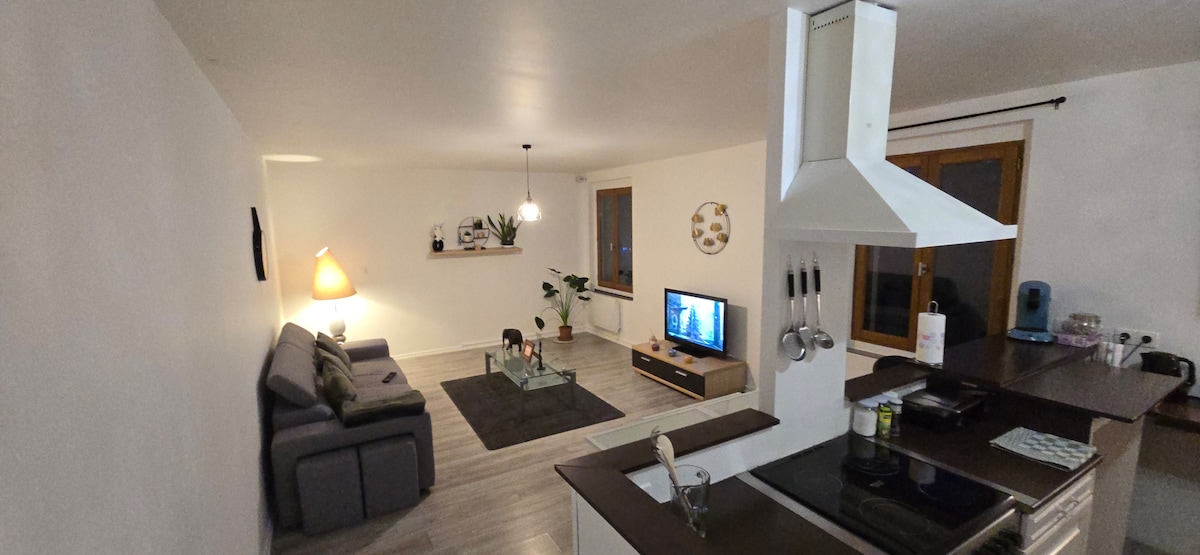 Profitez d'un logement élégant et central à Bellegarde, entièrement équiper en électroménager, linge de maison, TV 140 cm, lave-linge, lave-vaisselle, Réfrigérateur Congélateur, cuisinière, micro-ondes, cafetière, grille-pain, fer à repasser etc... Il comprend une chambre avec lit double ou 2 lits simples (à préciser 24h a l'avance) de qualité (matelas Bultex) ainsi qu'à un canapé convertible soit un total de 4 couchages. L'appartement exposé sud (avec balcon), neuf a la décoration est soigné.