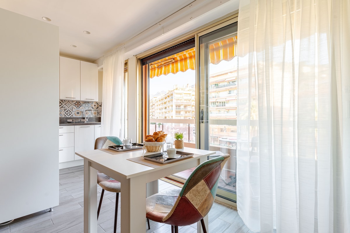 Découvrez notre charmant appartement rénové, à 10 min à pieds de la gare de Menton et 12 min à pieds des plages. Avec une chambre confortable, un salon avec canapé-lit, salle de douche, cuisine équipée (four, micro onde, lave vaisselle, machine à laver, bouilloire, machine à café, grille pain) Climatisation réversible dans la chambre et le salon parfait pour la saison estivale. Profitez de l'emplacement idéal pour explorer la ville. Réservez maintenant pour une expérience inoubliable!