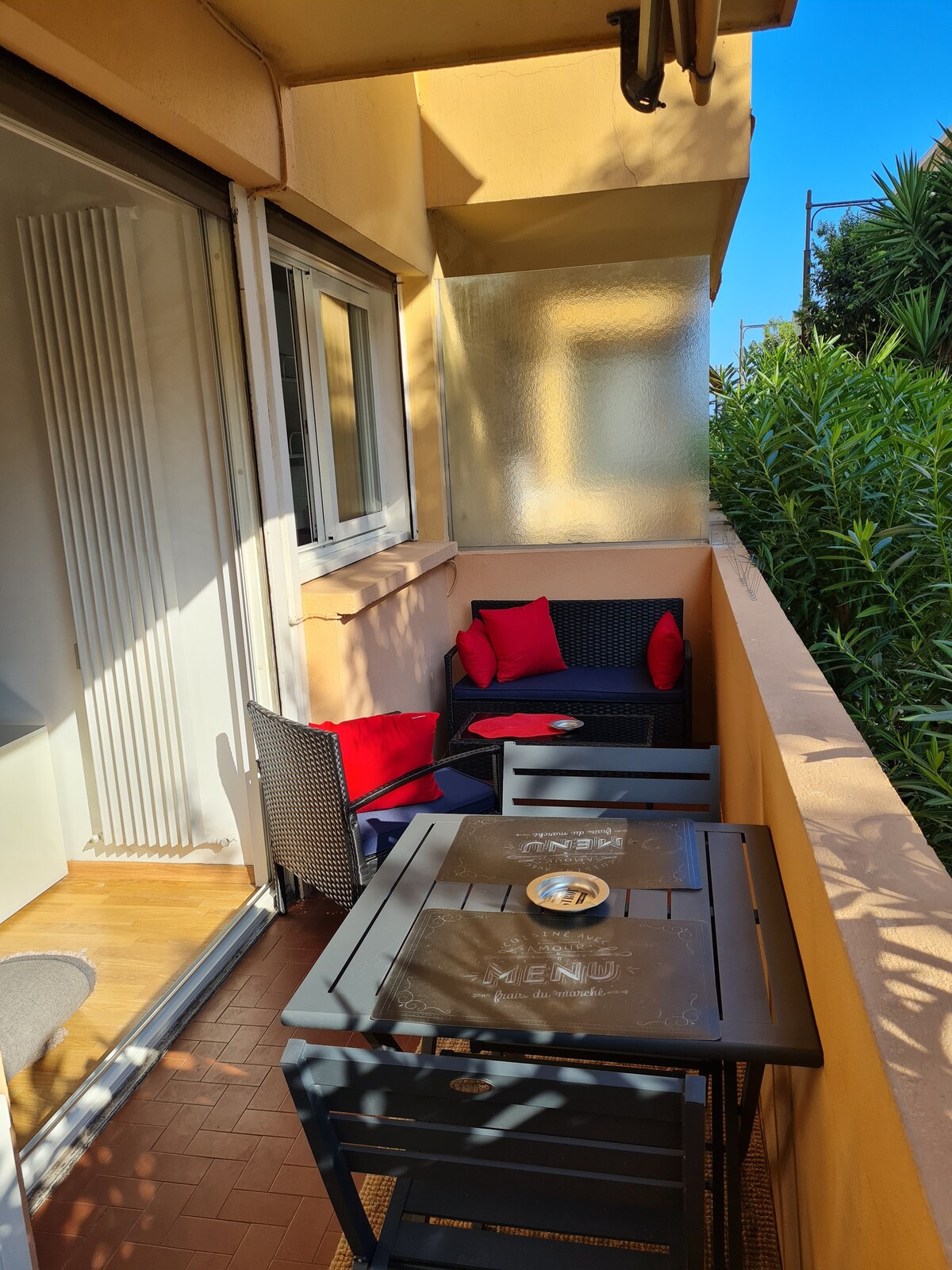 Ideal French Riviera base for couples/families (5th floor). License: BSL321HT@ +180 5-star reviews ⭐ Hi-tech comfort and unbeatable logistics: • Linens and towels included • PRIVATE GARAGE + EV CHARGING (Tesla/Universal) • FIBER WIFI | AC❄️ | Smart Home ready • Home automation • Bus stop 50m away Beds on request: 3rd bed (5cm latex topper) or Crib. Experience Provence with maximum technological comfort. Your vacation, our expertise!