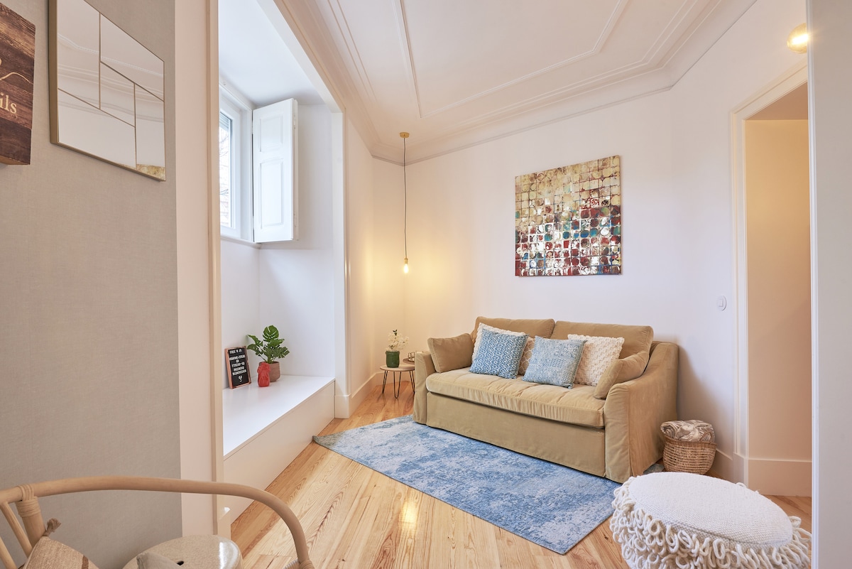 Looking for something modern and an authentic slice of local Lisbon life? Escape up the hill and enjoy Riverview sunsets in the courtyard. This is a 1st floor 1-bedroom apartment. It's cute and cozy, with sleek modern decor and an open-plan layout. It's a compact charmer, with polished floors, fashionable furnishings, and an open-plan layout. You'll be in a totally renewed historical building, in a charming neighborhood, up to one of the 7 hills, and with plenty of spots to take in city views.