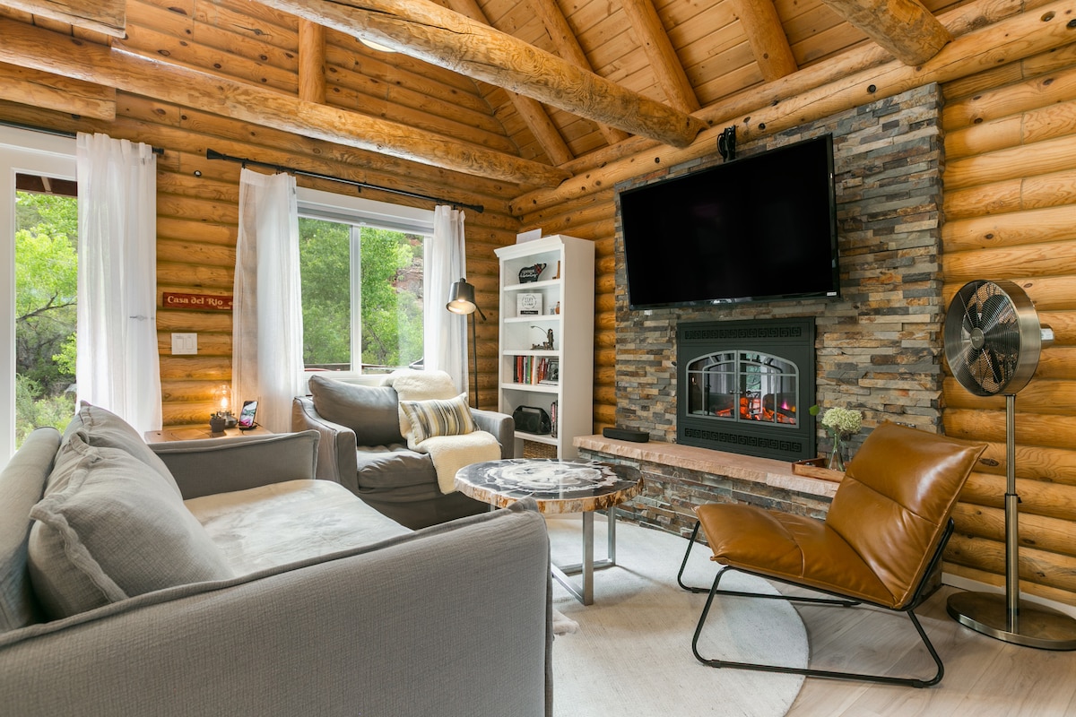Nestled at the base of a majestic mountain, Casa del Rio offers sweeping views of the mesa and river, with the Jemez River flowing right through the property. Modern amenities meet natural beauty—enjoy sunsets from the deck, s’mores by the riverside firepit, and drift off to the soothing sounds of the water. Just five minutes from hot springs and scenic hikes, and only an hour from Santa Fe or Albuquerque, it’s the perfect place to relax, explore, and make unforgettable memories.