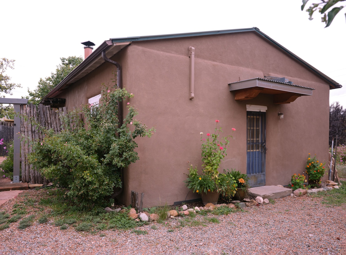 Nestled up in the quiet Sangre de Cristo foothills in the sought after east side of Santa Fe, w breathtaking western views of the Jemez Mountains. 4 miles to the heart of town, 3 miles to Canyon Road, 1 mile to museum Hill. Just off of the historic Old Santa Fe Trail, up 3/10 of a mile up a private, maintained dirt road, in a rural gated community. Enter your cozy adobe, pristine casita. Ideal space for a romantic getaway, or solitary retreat. Across the porch from my Casa.