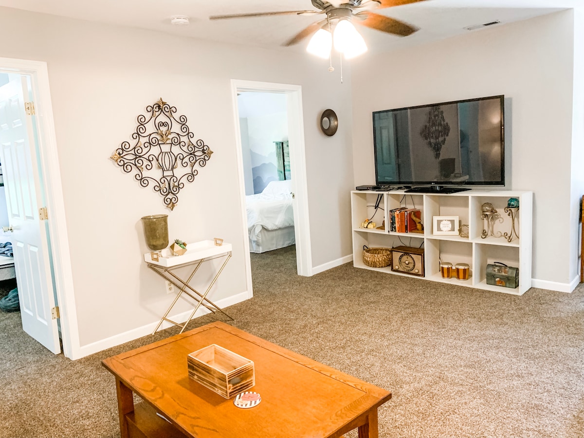 Welcome to Pop Luck's Guest Suite! This adorable gem represents everything you love about Old St. Charles. This cozy suite is just steps away from the heart of Main Street, restaurants, and all the action St. Charles has to offer. Pop Luck's is a charming one-bedroom, with an open and airy living room and kitchen. It has natural light and high ceilings throughout. It's farmhouse cottage decor makes for a relaxing place to rest. Also, check out our sister suite The Ella Rose, right next door.