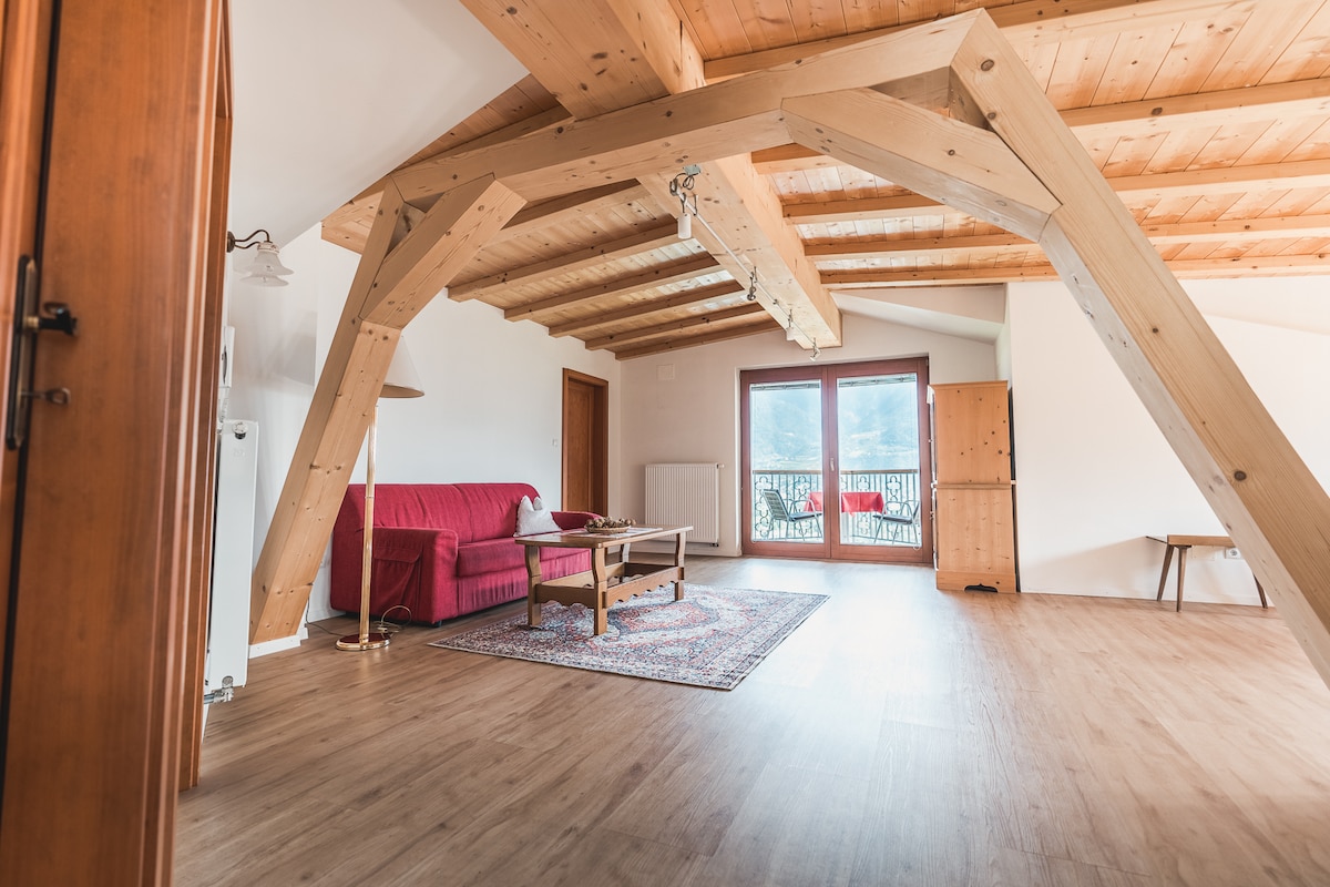 The 200 m² "Apt. Penthouse – Chalet Schenna" is located in a quiet area at the entrance to the village of Schenna and offers an ideal starting point for your stay. The holiday apartment on the 2nd floor is modern and high-quality, featuring a cozy living room with an open, well-equipped kitchen including a large kitchen island. With three bedrooms, three bathrooms, a sofa bed in the living room, and an additional guest WC, the accommodation can host up to eight people.