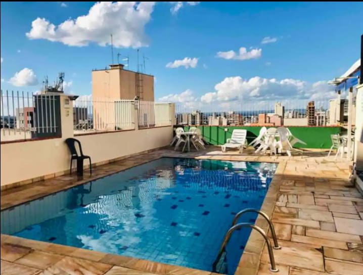 Flat mobiliado no Centro, localizado no 12º andar, com conforto, praticidade e excelente localização. Com 1 quarto contendo uma cama de casal, 1 banheiro, sala integrada à cozinha americana equipada, varanda com vista da cidade, ar-condicionado na sala e no quarto, TV e Wi-Fi. Com infraestrutura de hotel, piscina, academia, portaria 24h, elevadores e 1 vaga de garagem com serviço de manobrista. Localização privilegiada: a poucos minutos do Shopping Santa Úrsula, Choperia Pinguim.