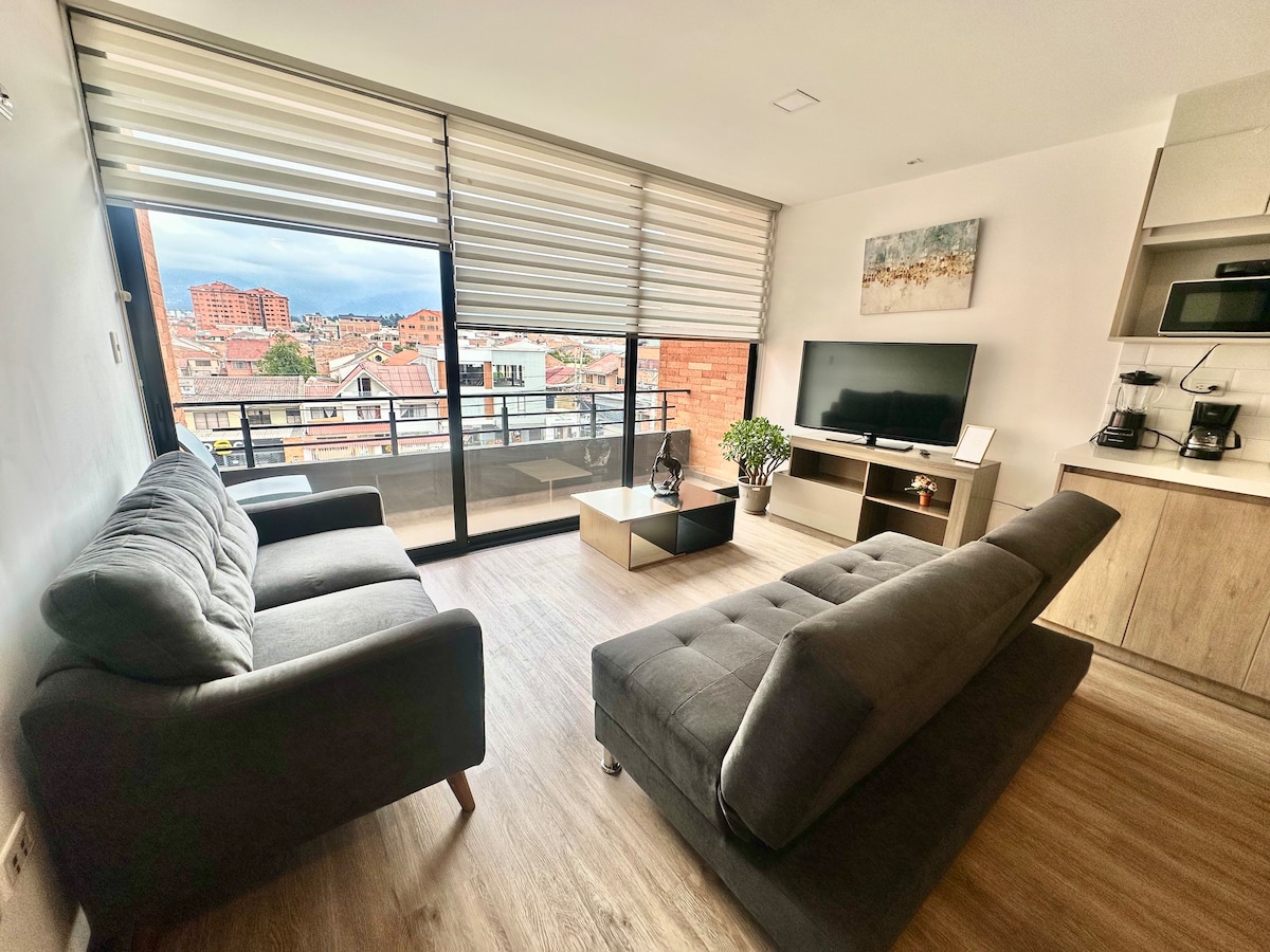 A spectacular brand new Suite located in the best neighborhood of Cuenca "El Vergel". The suite has a Queen size bedroom, 1 full luxury bathroom, spacious equipped kitchen and also a work area equipped with the best internet speed. The surroundings of the suite are incredible, river, parks, gastronomic area, bakery, stadium, city center, historic center, university, Clinics, College, Banks all within a radius of 500 meters.