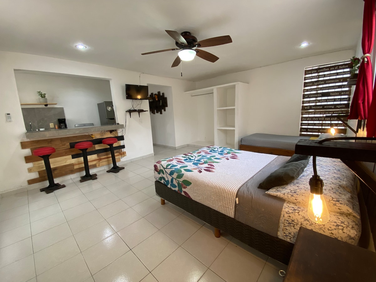 Este pequeño estudio con cocineta es perfecto para 1 o 2 viajeros que busquen experimentar la vida local de Cancún y alrededores. Ubicado en el corazón de Cancún en uno de los primeros barrios de esta joven ciudad. IMPORTANTE!! Hay un impuesto local (Saneamiento) el cual deberá ser pagado al momento de la llegada o salida, $79 pesos por noche, Pago en efectivo o con tarjeta por medio de airbnb.