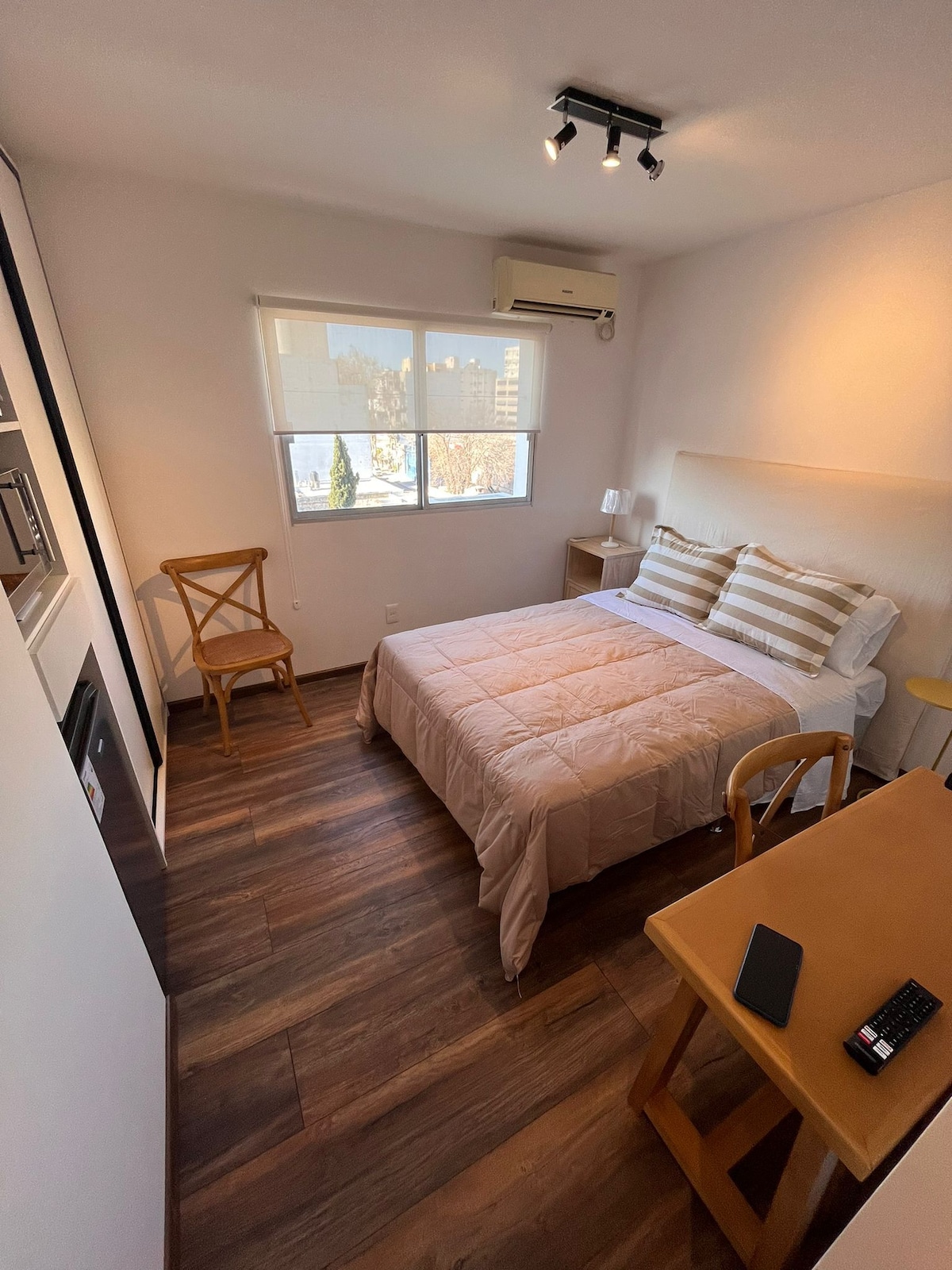 Disfruta de la sencillez de este alojamiento tranquilo y céntrico. Apartamento Monoambiente recientemente estrenado. Cuenta con Cama Queen y Sofá Cama. Luminoso y equipado para que tu estadía sea perfecta. El edificio tiene gimnasio, laundry y zona de cowork. Ubicado: 6 min en vehículo de la Terminal Tres Cruces A pocas cuadras del Mercado Agrícola A pocos metros del Palacio Legislativo.