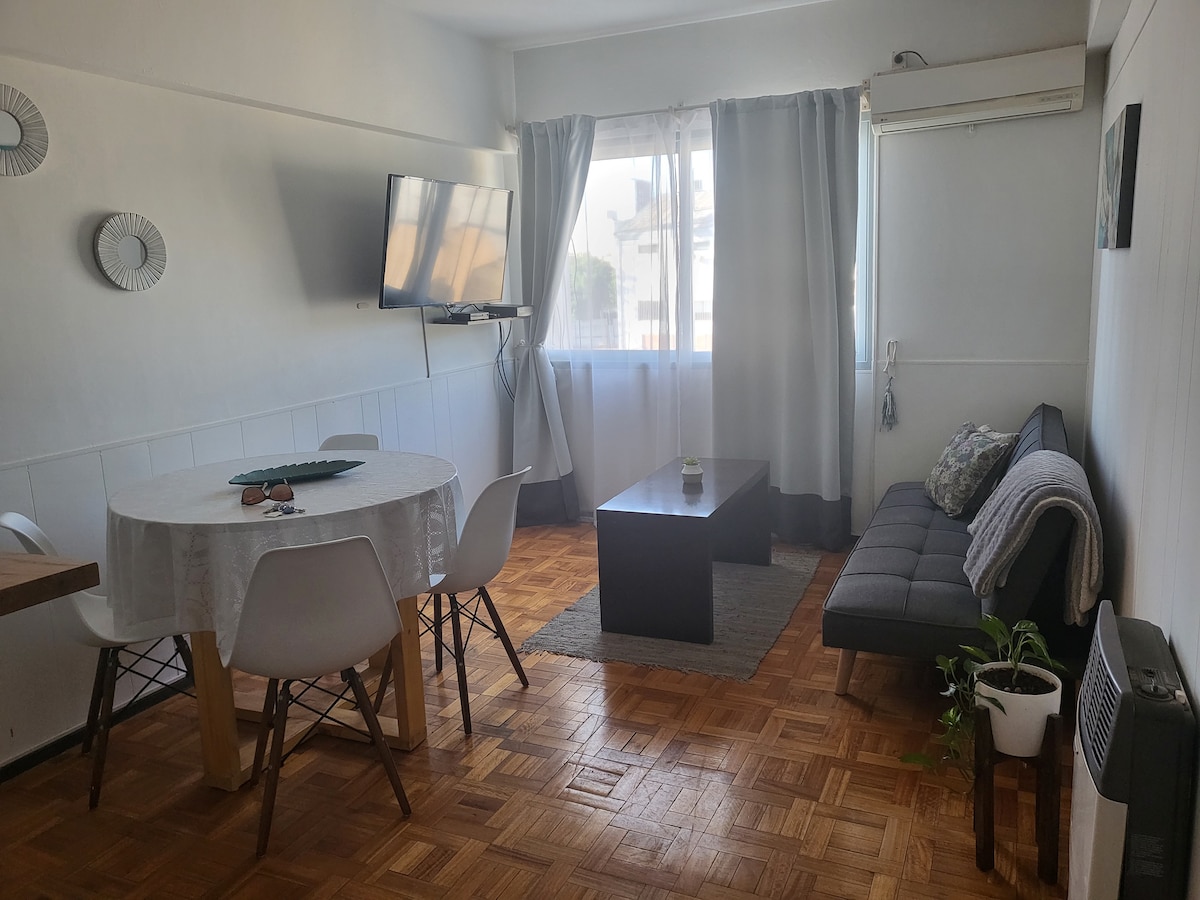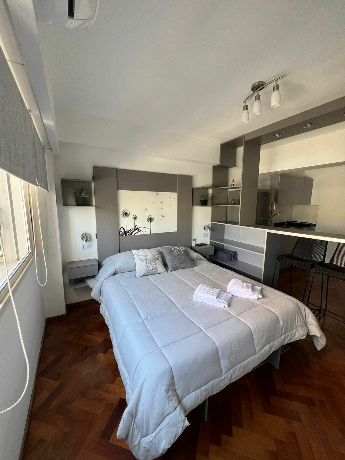 Sentí Mendoza como tu casa. Ubicada en el corazón de la ciudad. Zona de bares y plazas más importantes de Mendoza. A una cuadra de la peatonal. Disfruta de un espacio cómodo y atractivo. El apartamento es a estrenar, de 50 mts cubiertos y cuenta con una habitación, con cama superior y vestidor, TV y aire ac. f/c, baño, con secador de pelo, shampoo, acondicionador, cocina con península de piedra, living con TV, sofá cama y aire ac f/c, lavarropas. Estacionamiento de pago. ¡Infusiones de cortesía!