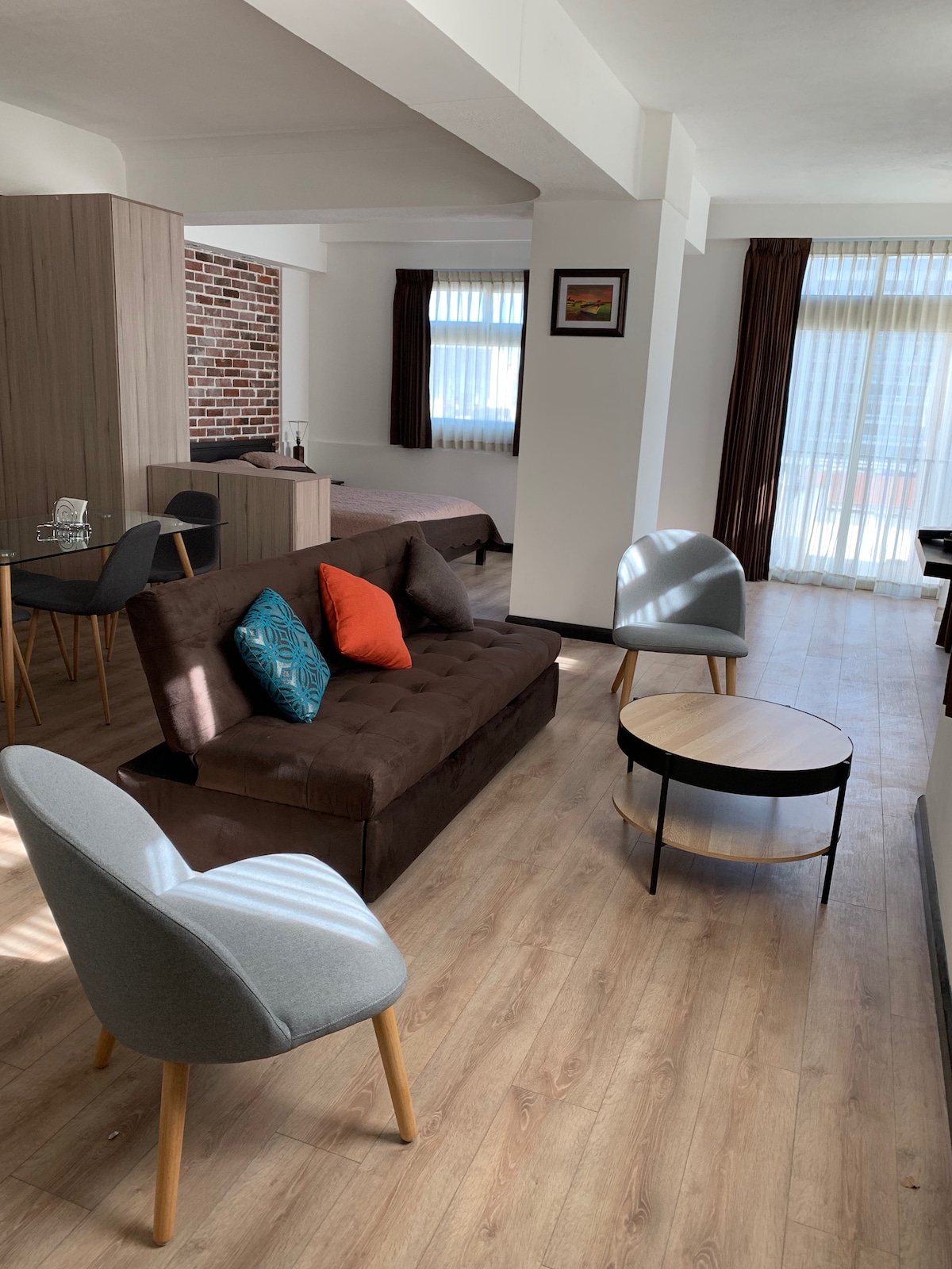 Este acogedor loft te permite tener la comodidad y ubicación ideal para tu estadía. Cuenta con todos los servicios y un balcón con hermosas vistas. A solo unos pasos puedes encontrar variedad de restaurantes (¡ incluso en el mismo edificio !), cafés bares, edificios y monumentos históricos, mercado de artesanías. La buena ubicación te permite tener fácil acceso a todas las zonas de la ciudad y en 15 minutos puedes llegar desde el aeropuerto internacional La Aurora, tomando un Uber o taxi.